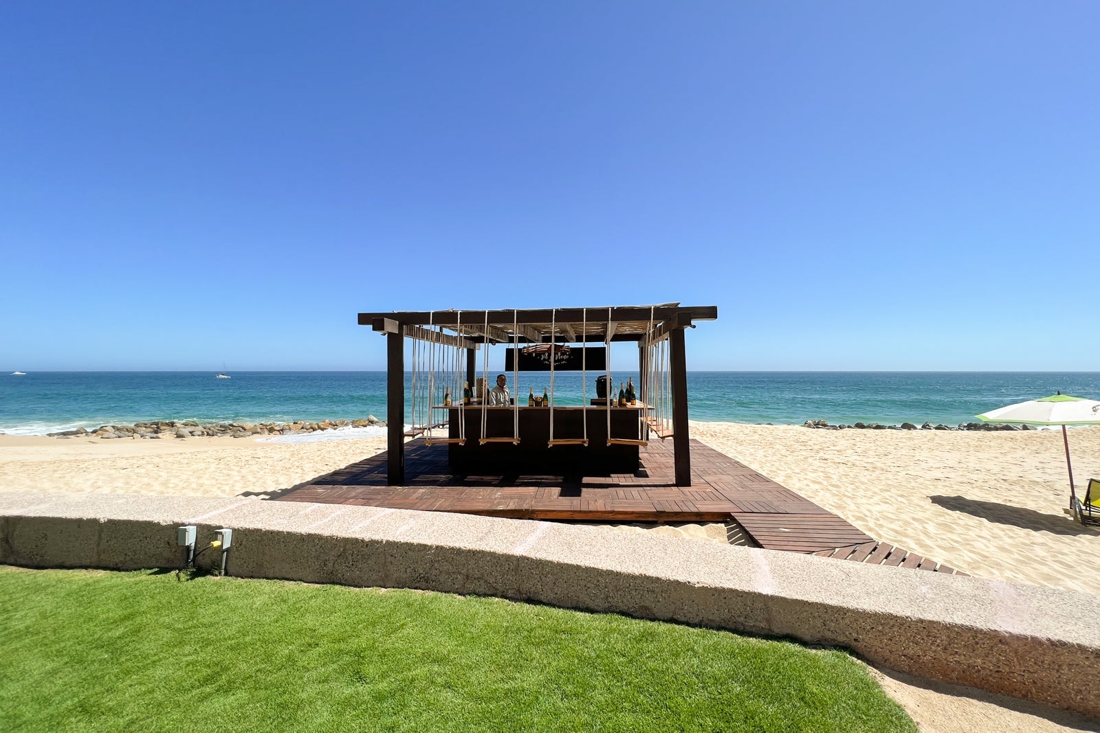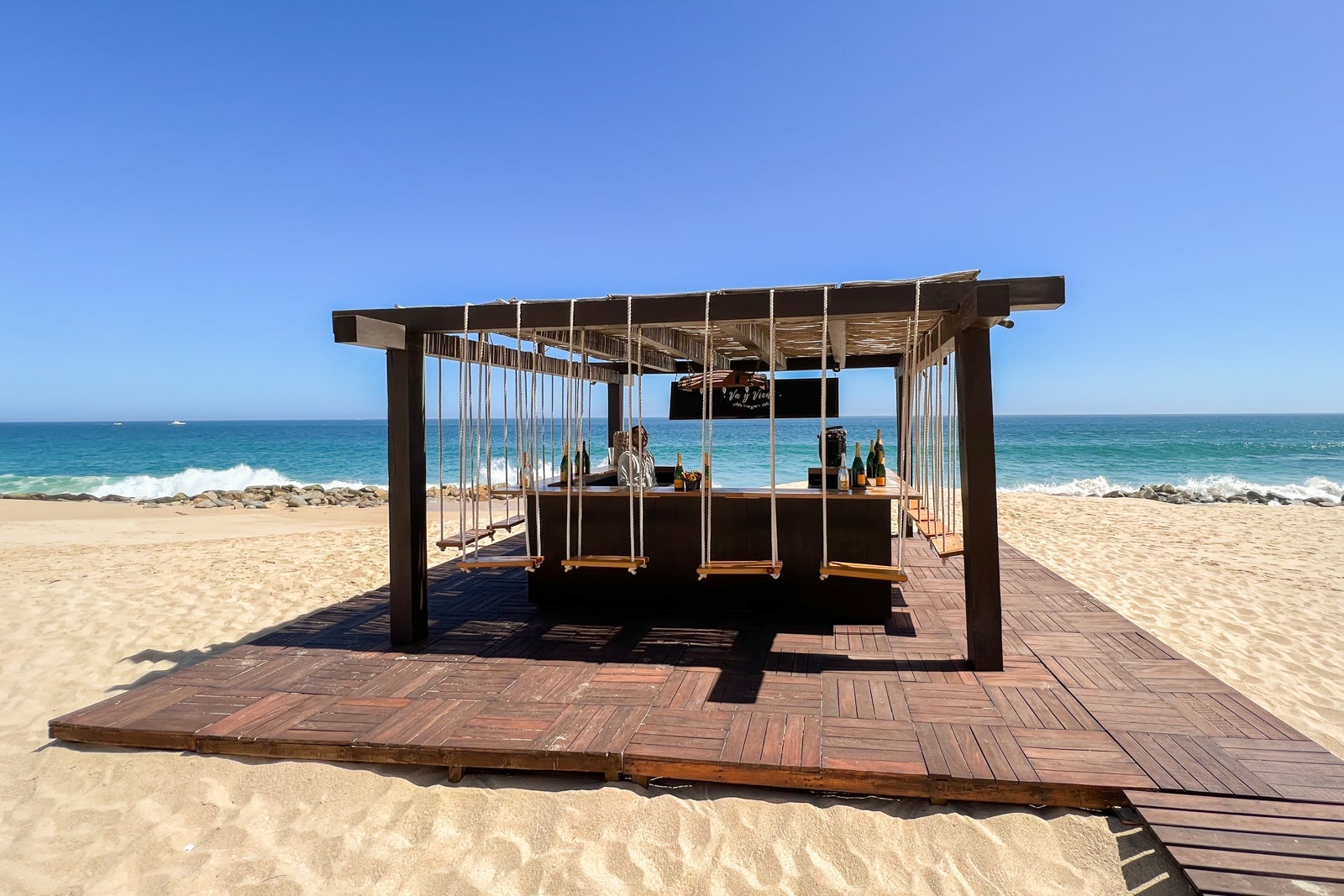Instead of a tequila tasting, I decided to splurge on a glass of Champagne at the resort's beach Champagne bar, Va y Viene, which seems tailor-made for social media influencers. This little wooden structure had been added since my last stay here and is surrounded by swing seats — so be careful with that flute of bubbly! Glasses start at a whopping $33, though I went slightly more bougie with a $35 glass of Taittinger, which is one of my favorites.