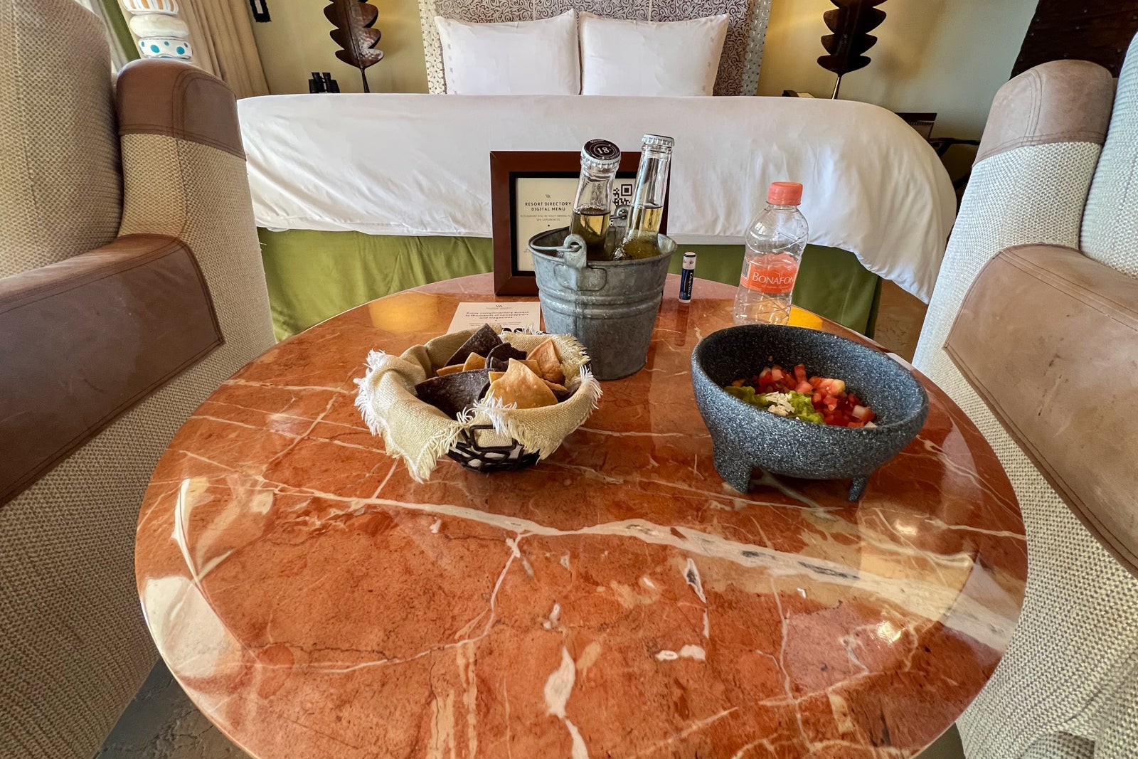 Hotel staff members would also drop by each day between 4 and 5 p.m. with a complimentary tray of chips, guacamole, pico de gallo and a bucket with two small Coronas, which I thought was a nice touch.