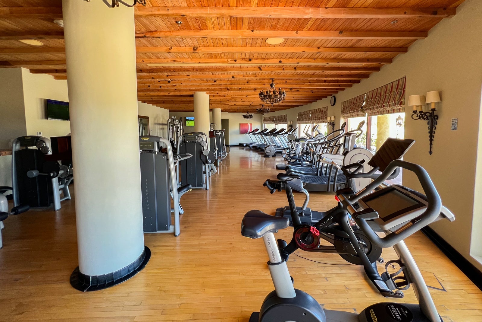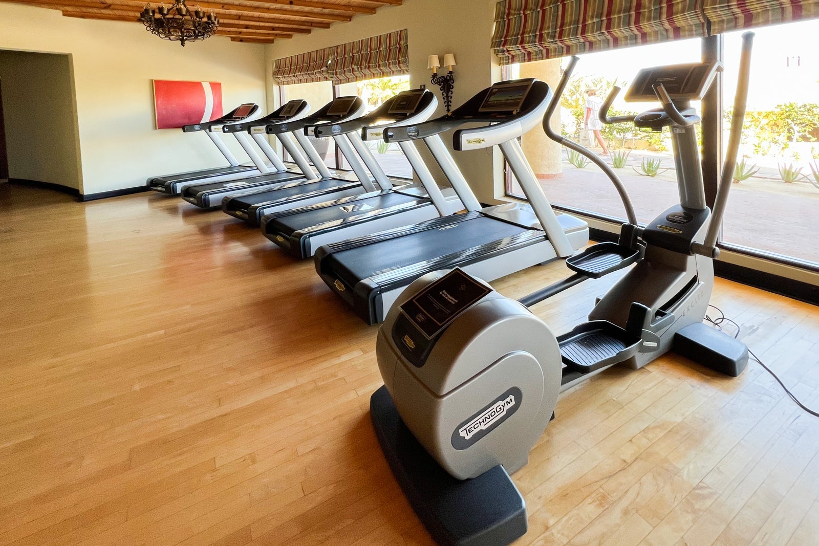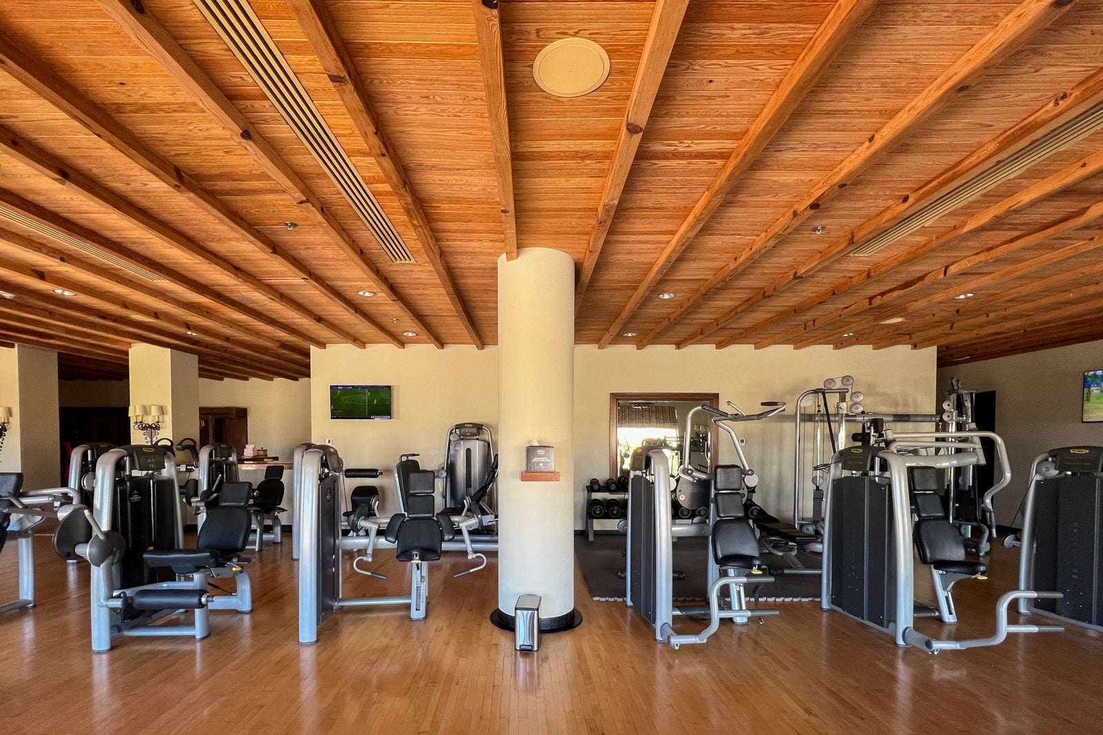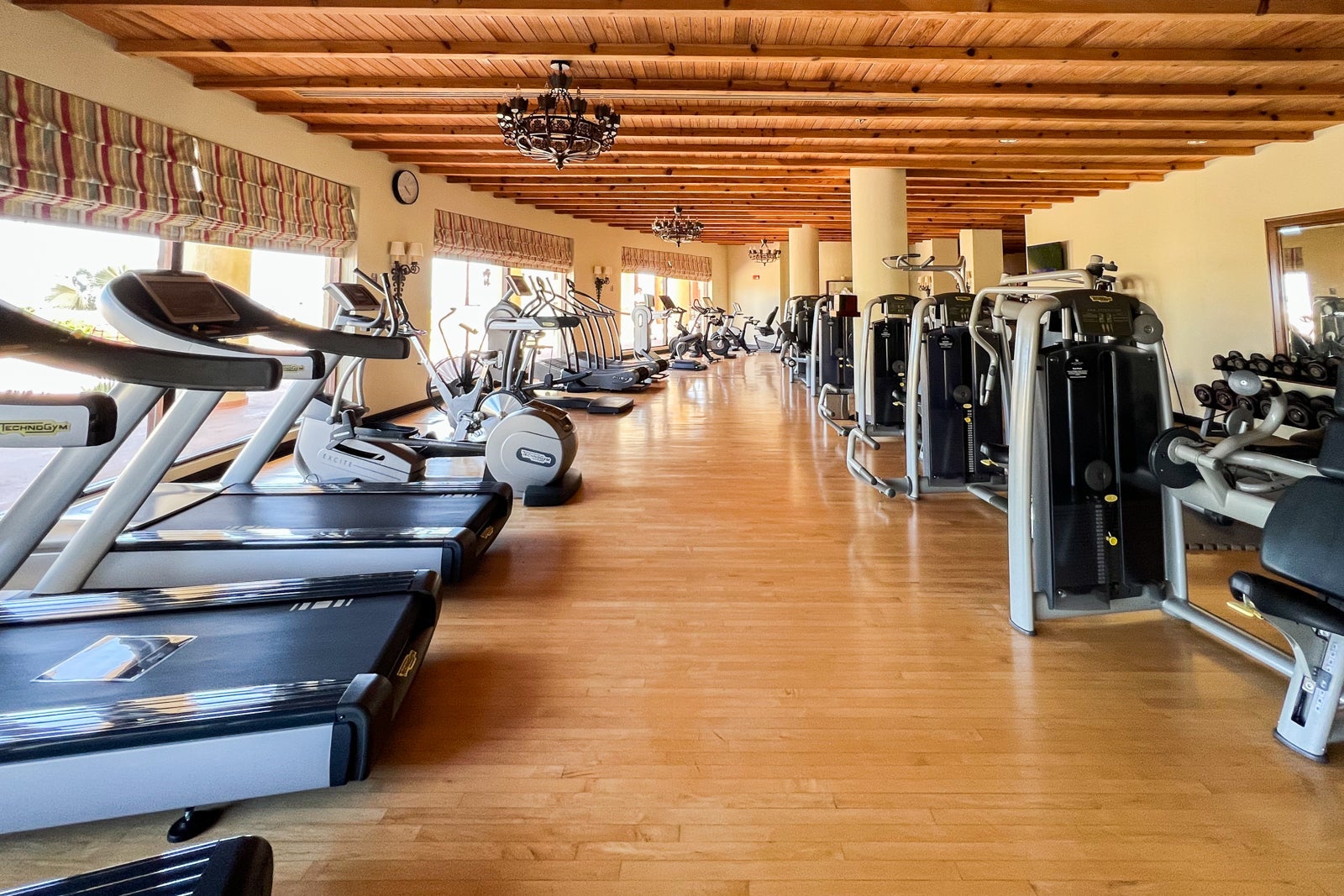 Instead, I hit the gym, which is located in a series of rooms on the other side of the entrance from the office. At this point, the facilities are looking a little outdated, though you will find plenty of Technogym weight and cardio machines plus a separate studio for stretching and yoga.