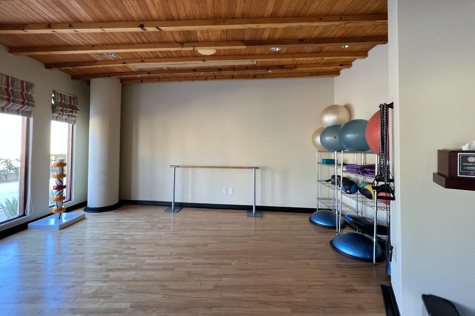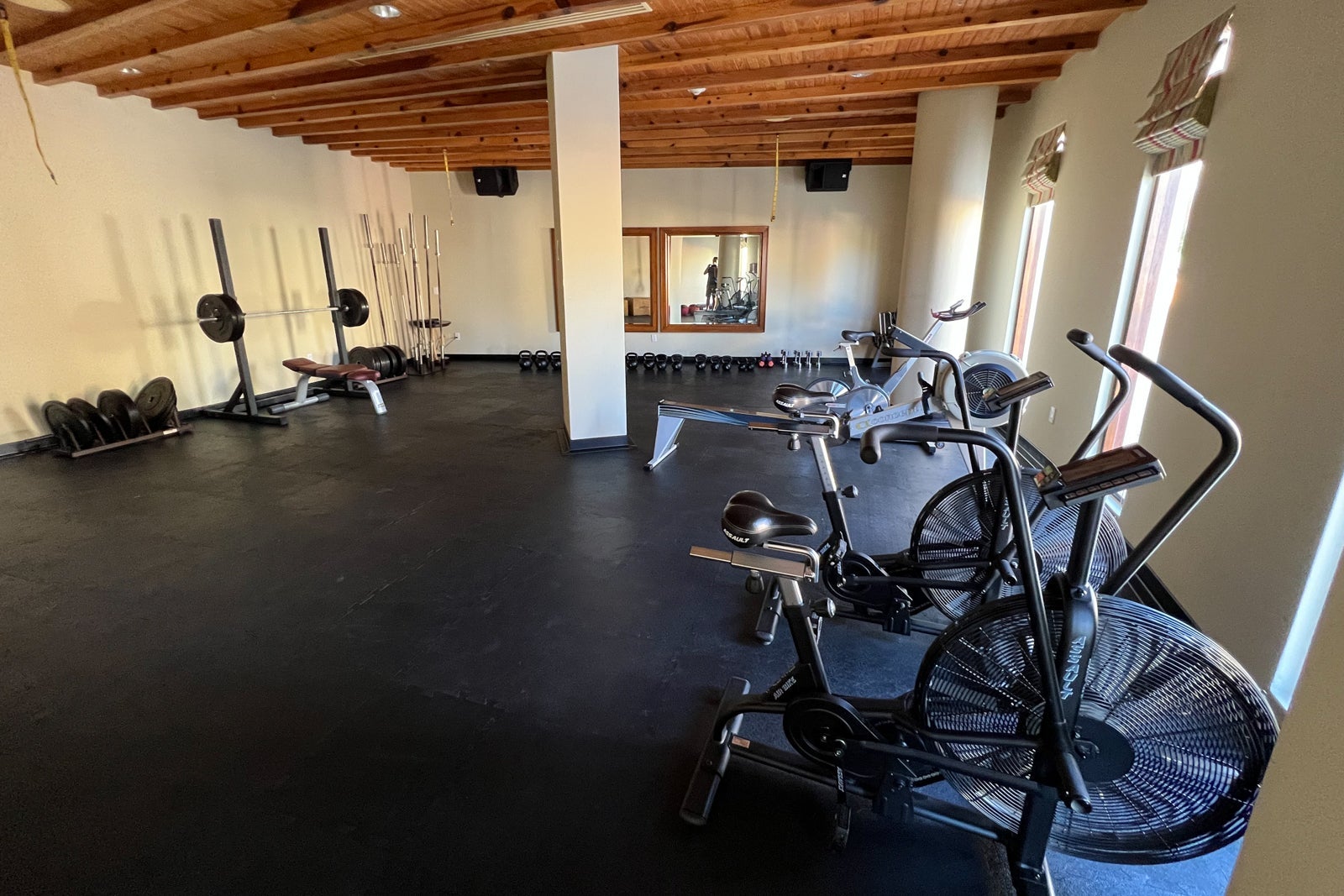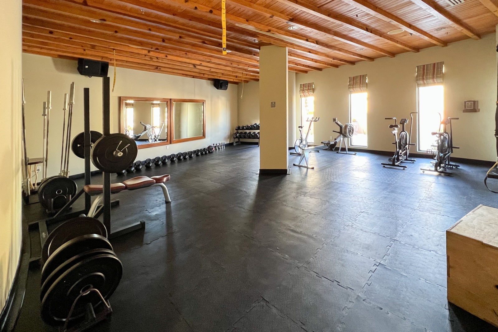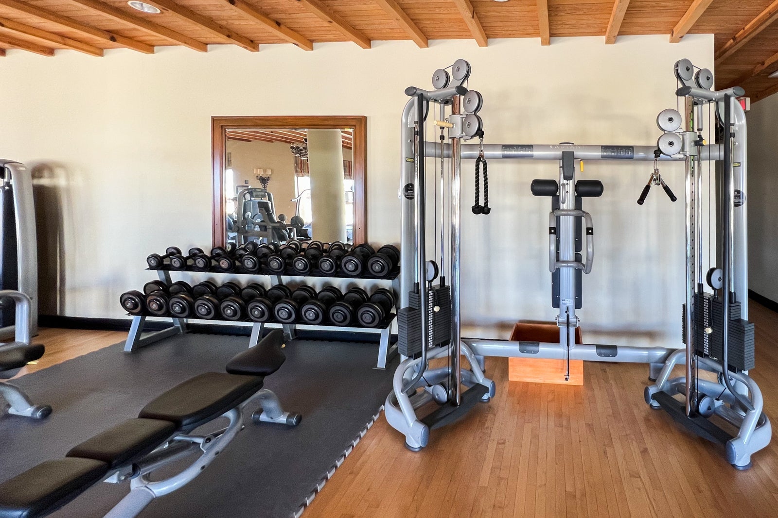 Instead, I hit the gym, which is located in a series of rooms on the other side of the entrance from the office. At this point, the facilities are looking a little outdated, though you will find plenty of Technogym weight and cardio machines plus a separate studio for stretching and yoga.