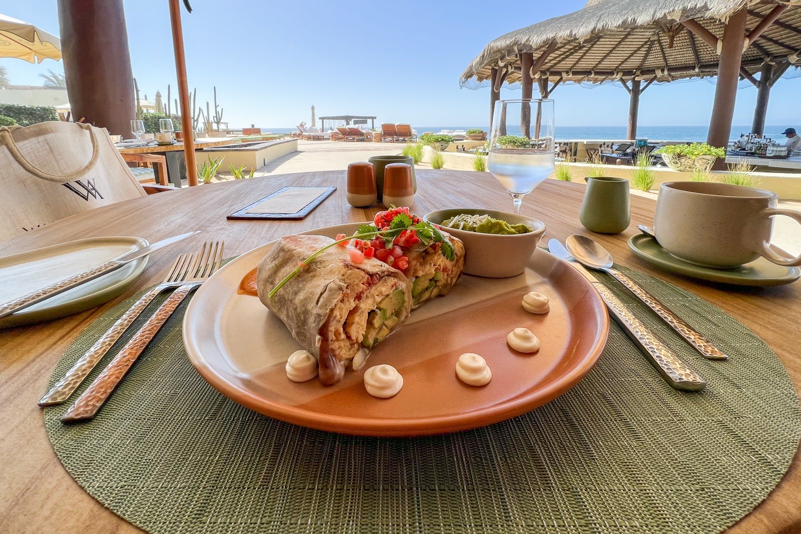 For $10 more, I could also order an a la carte dish, so one of the mornings I was there, I treated myself to an enormous breakfast burrito with scrambled organic eggs, which were delicious, beans and avocado with guacamole, pico de gallo and dollops of sour cream on the side. I lingered over it while doing some work and even though the staff members were clearing the other tables for lunch service, they came by to offer to reheat my dish and pour fresh coffee and another glass of water whenever I wanted, which was just par for the course in terms of the elevated service levels.