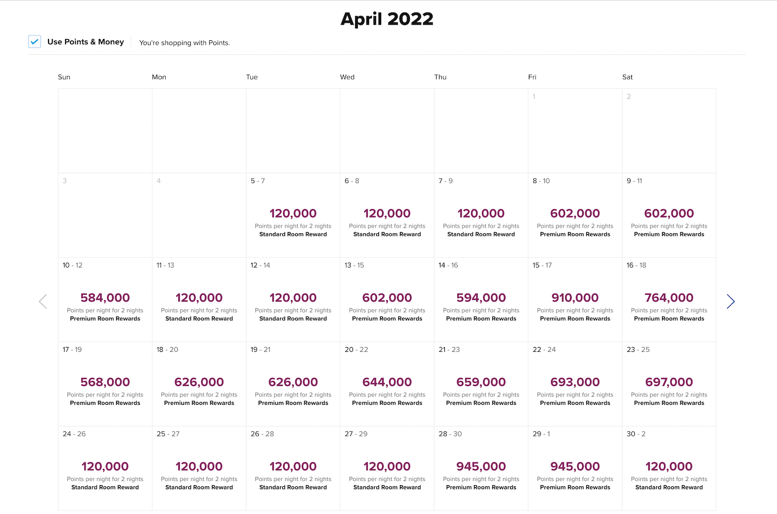 The reason base-level points rates might not be easily available is that the hotel has several different non-standard room types, as well as a large proportion of suites and multi-bedroom villas and casitas for which it charges some exorbitant prices (ranges during April and May ran from 364,000 to 1.9 million points per night).