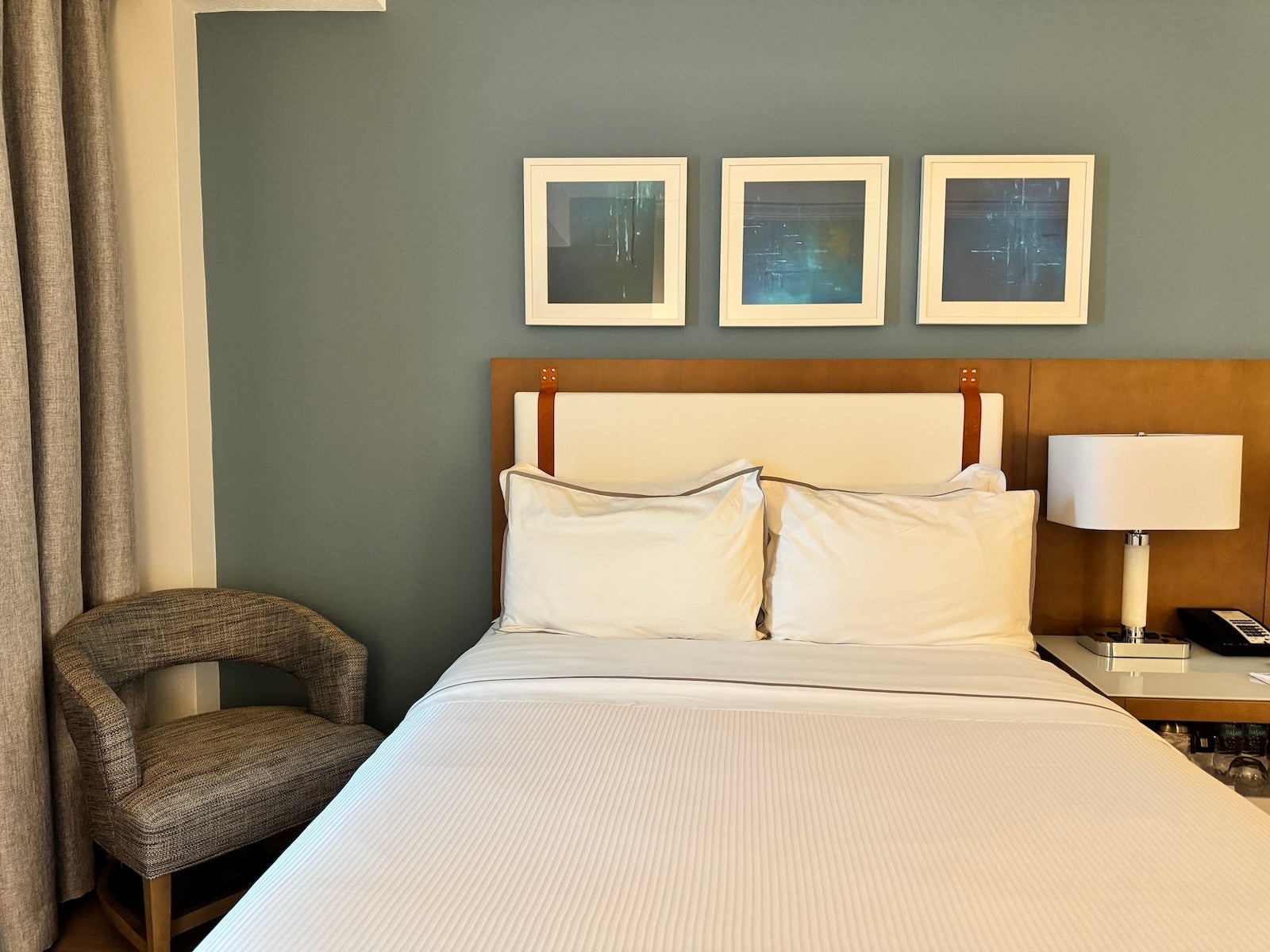 Similar to the hotel's public spaces, the rooms felt calm and serene, with hues of blue and white set against blonde wood furnishings.