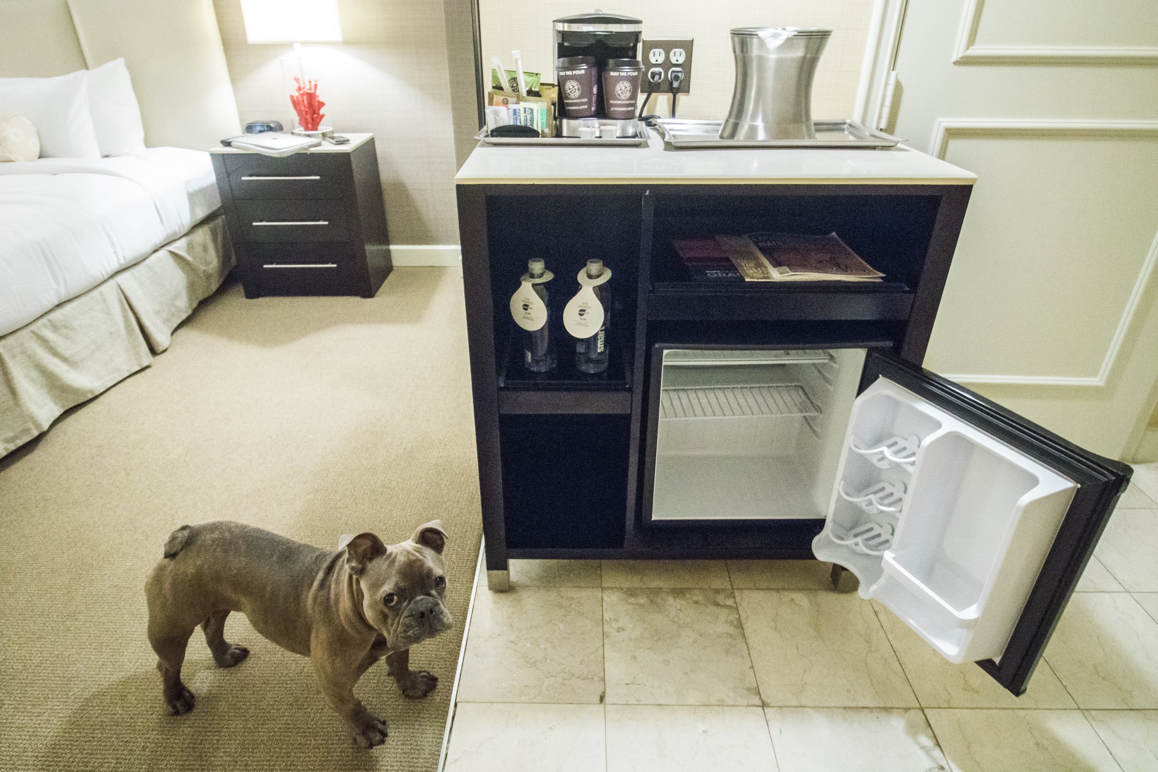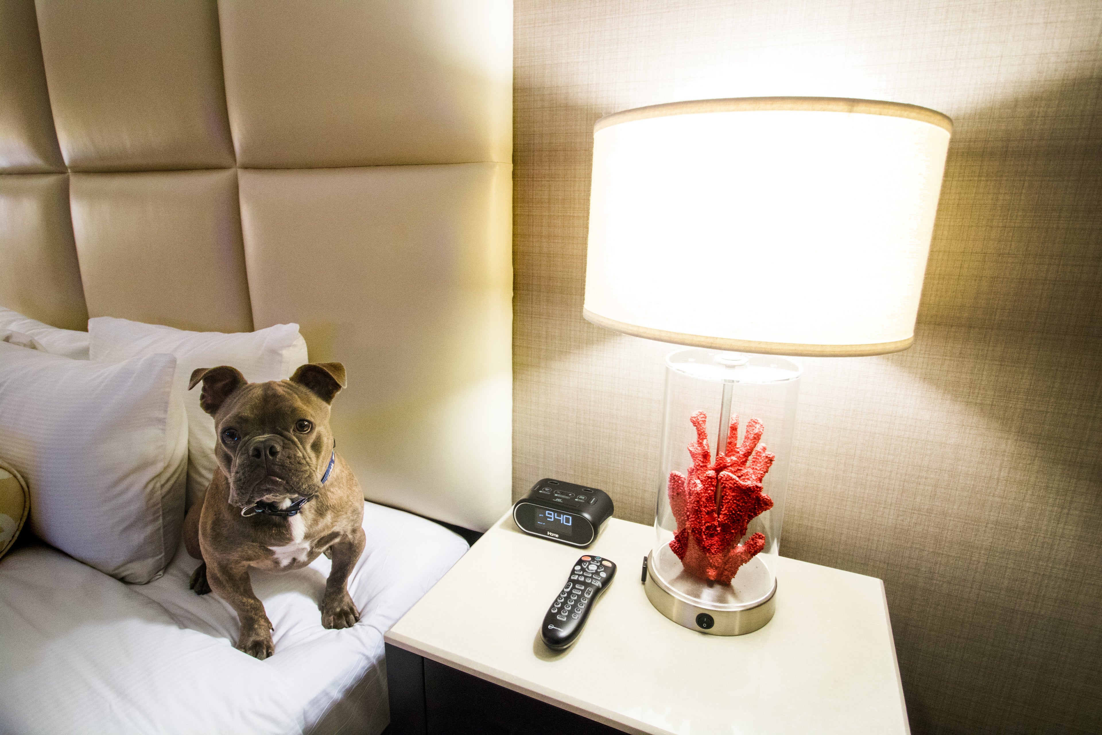 We walked into the lobby, and I was instantly bombarded with people telling me how cute I was. I let them pet me as Danielle checked in. She had to sign a waiver acknowledging the rules and the one-time pet fee of $50. Basically, the rules said that I would be allowed anywhere within the resort, with the exception of the rooftop lounge and inside the pool. Luckily, I would still be allowed in the pool area, I just couldn't go for a dip.