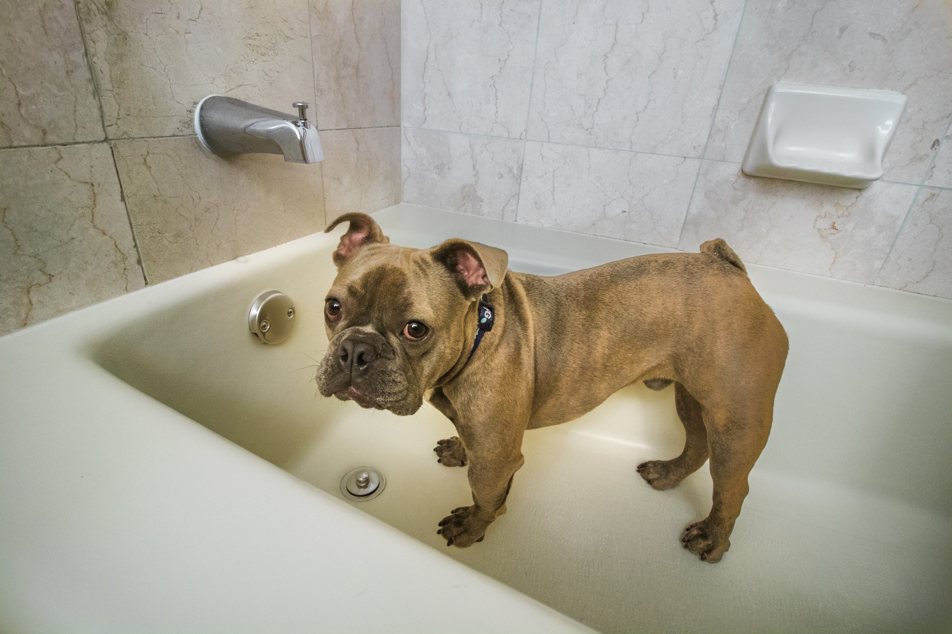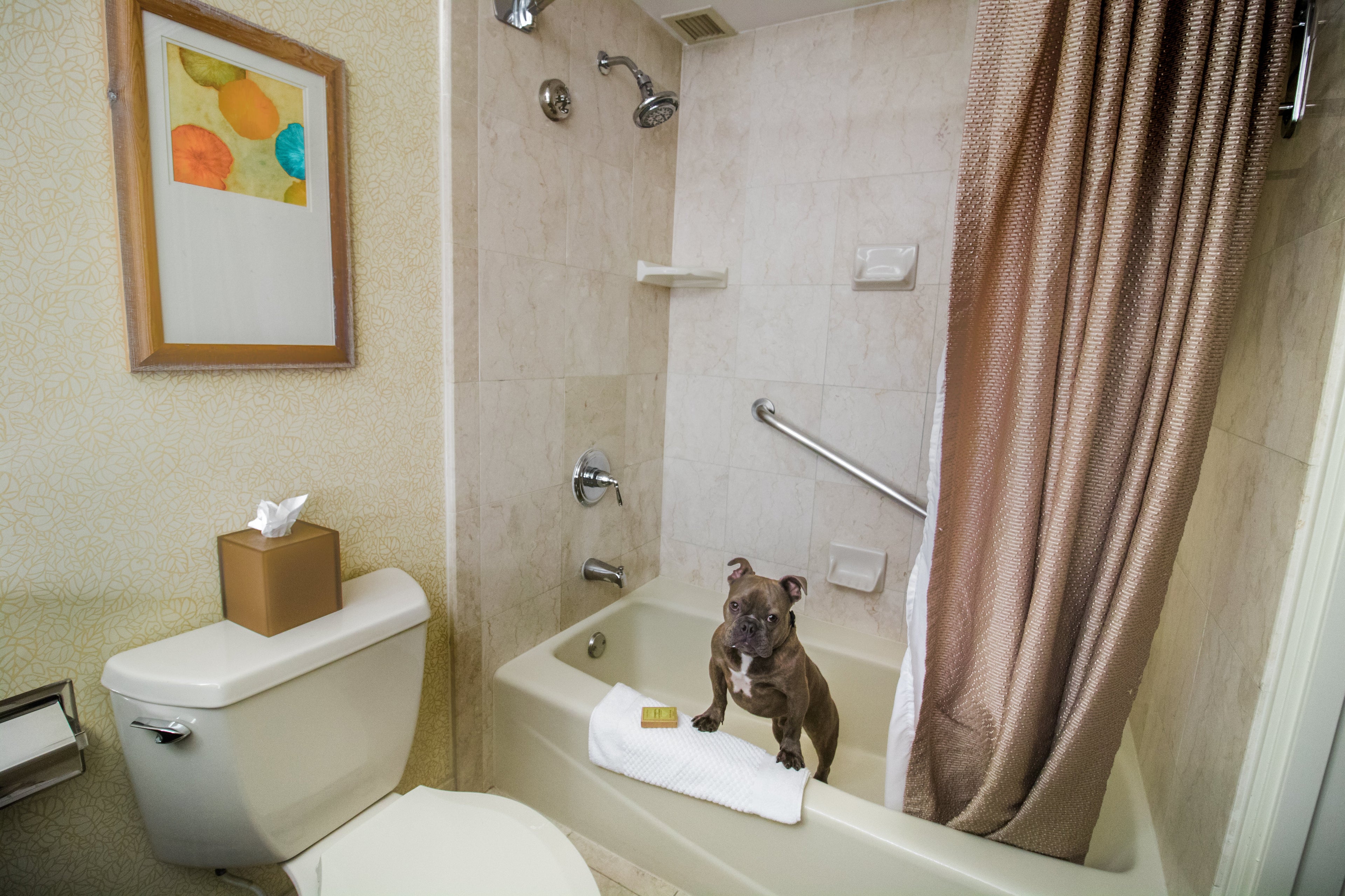 For all of the traveling pups out there, I decided to create a test of my own: the TPP bath test. I definitely had a good amount of space between the faucet and my head. The TPG shower test may have been a fail, but the TPP bath test was a pass!