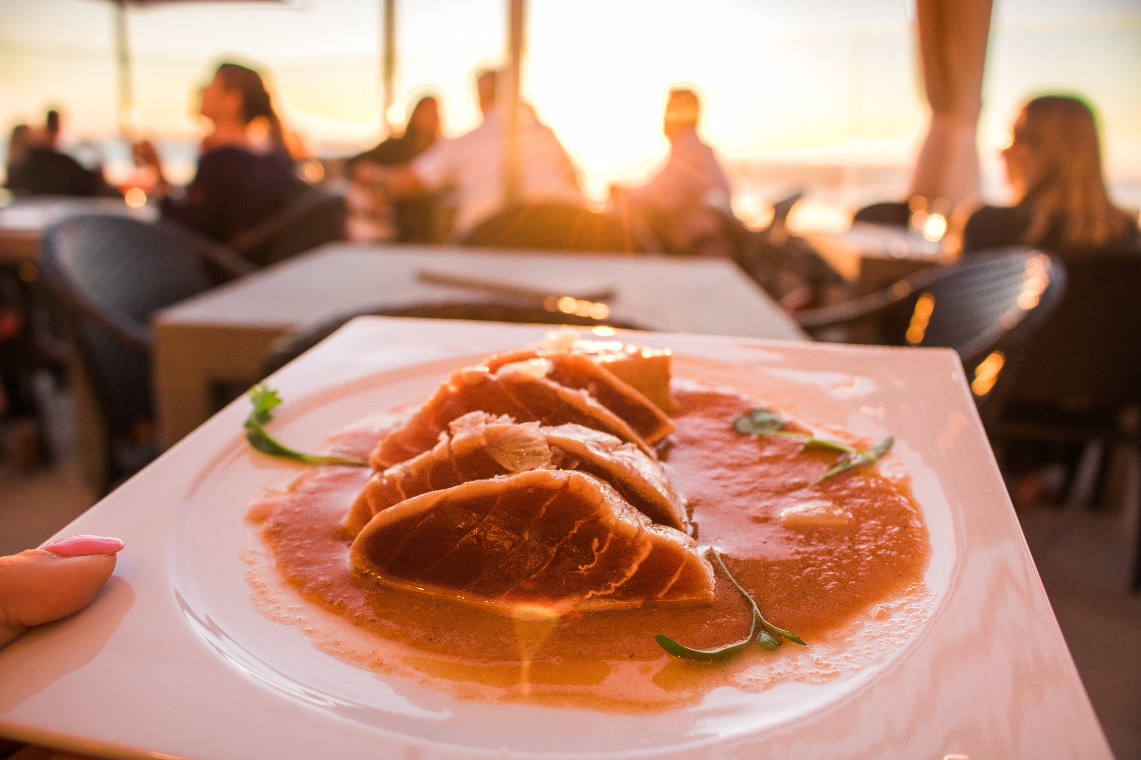 After a day at the pool, Danielle went up to the Offshore 9 Rooftop Lounge located in the Twin Dolphins Tower. The bar's menu consisted of small plates and fancy cocktails. It also boasted that it had "complimentary sunsets," which it definitely delivered.