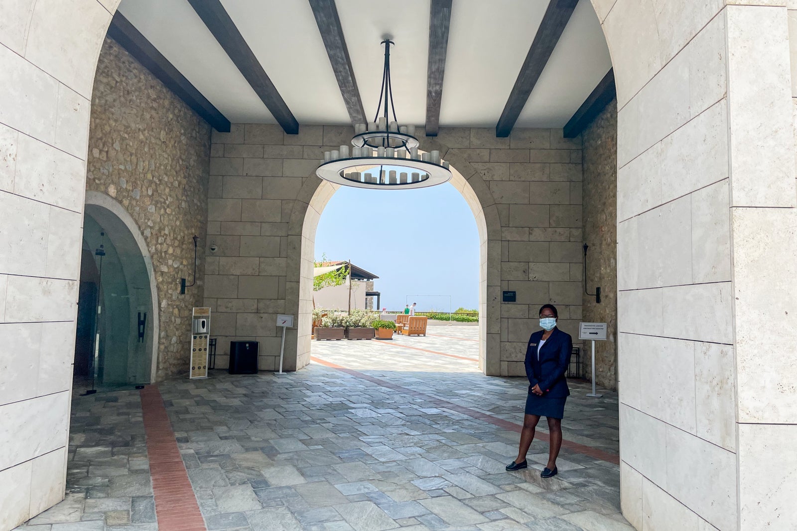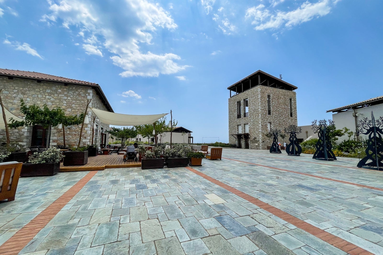 Costa Navarino is in a secluded area in Southern Greece with not much else around it. The resort property is sprawling and heavily secured, with multiple guards as you reach the check-in area who confirm your reservation on the list numerous times.