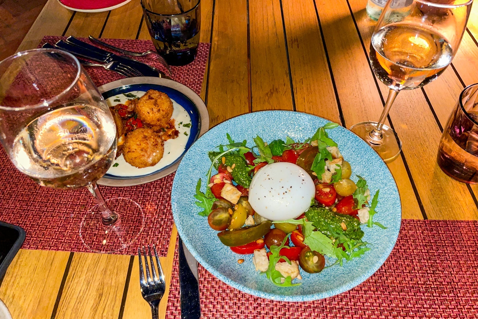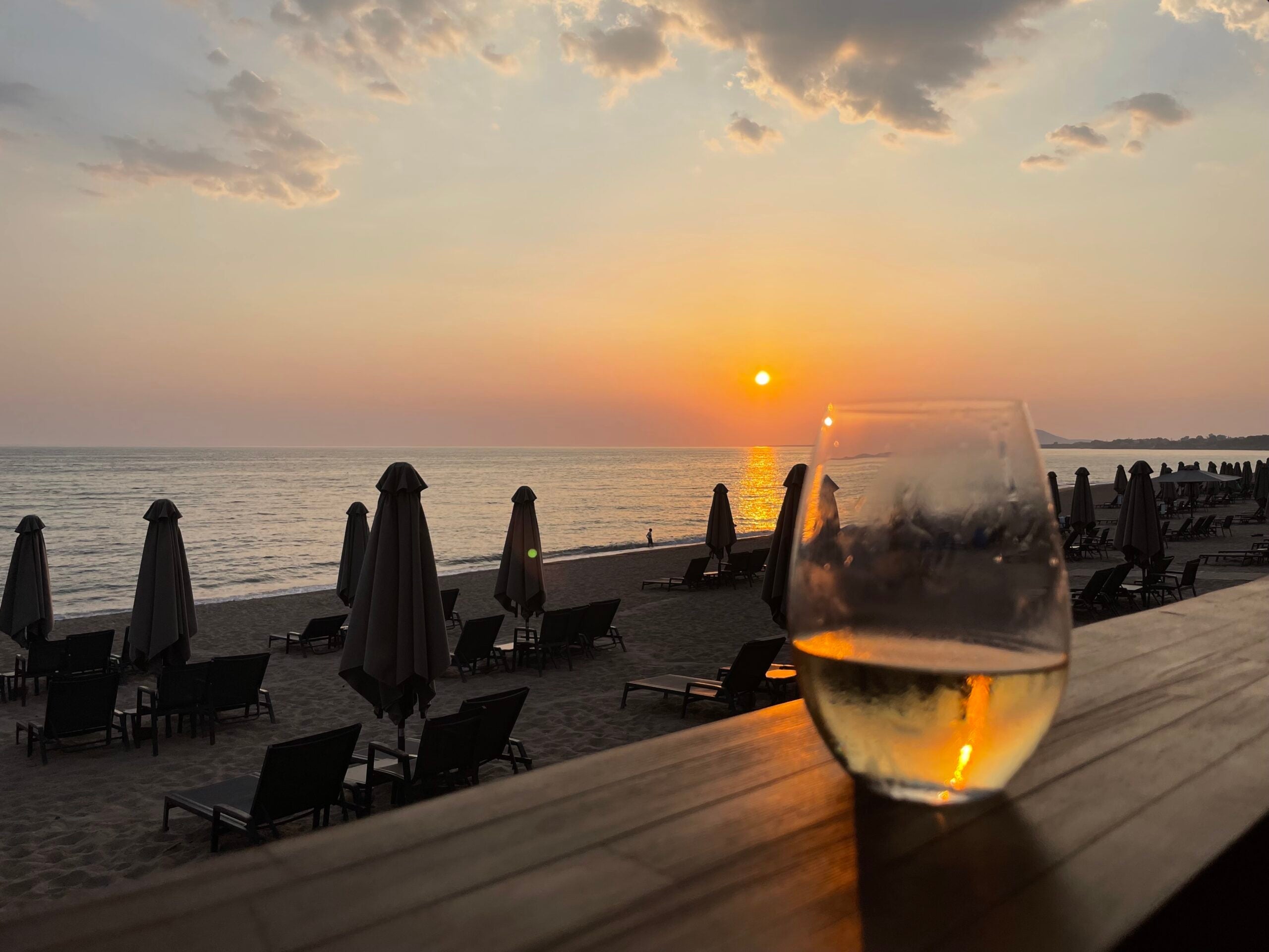 The resort also offers an assortment of water activities you can book if that's more your style. There are plenty of kayaks to rent, or you could even arrange a sunset yacht. With the short amount of time I had, I chose to enjoy the sunset from the hotel restaurant with a glass of assyrtiko — a fruity white wine.