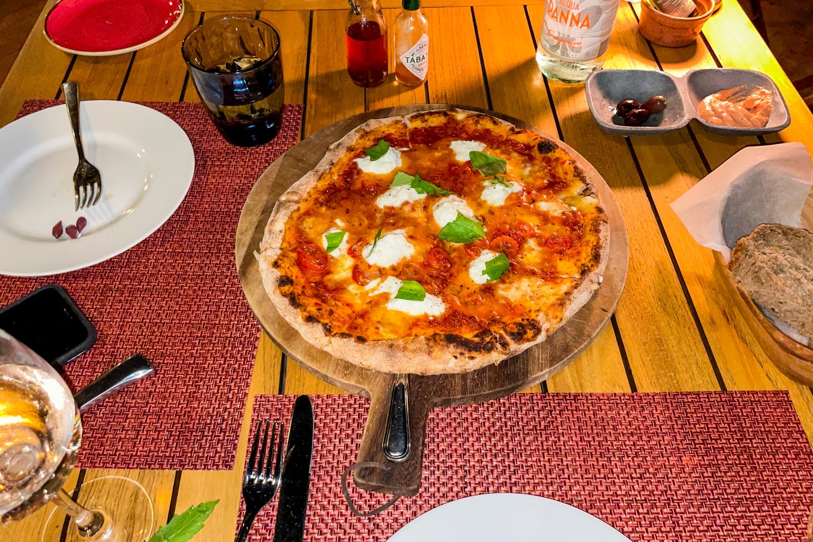 Everything was delicious, from the burrata salad with fresh cherry tomatoes to the margarita pizza. I was a huge fan.