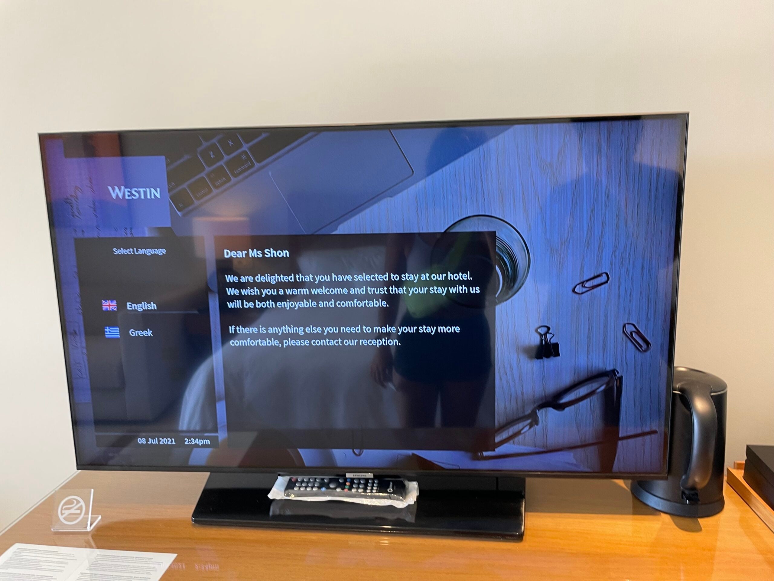The week of my reservation, the concierge at The Westin reached out and provided a list of rates for chauffeur service from the airport. It was quite pricey, starting at 135 euros from KLX and 460 euros from ATH. Thankfully, we had a car and didn't need airport transfers.