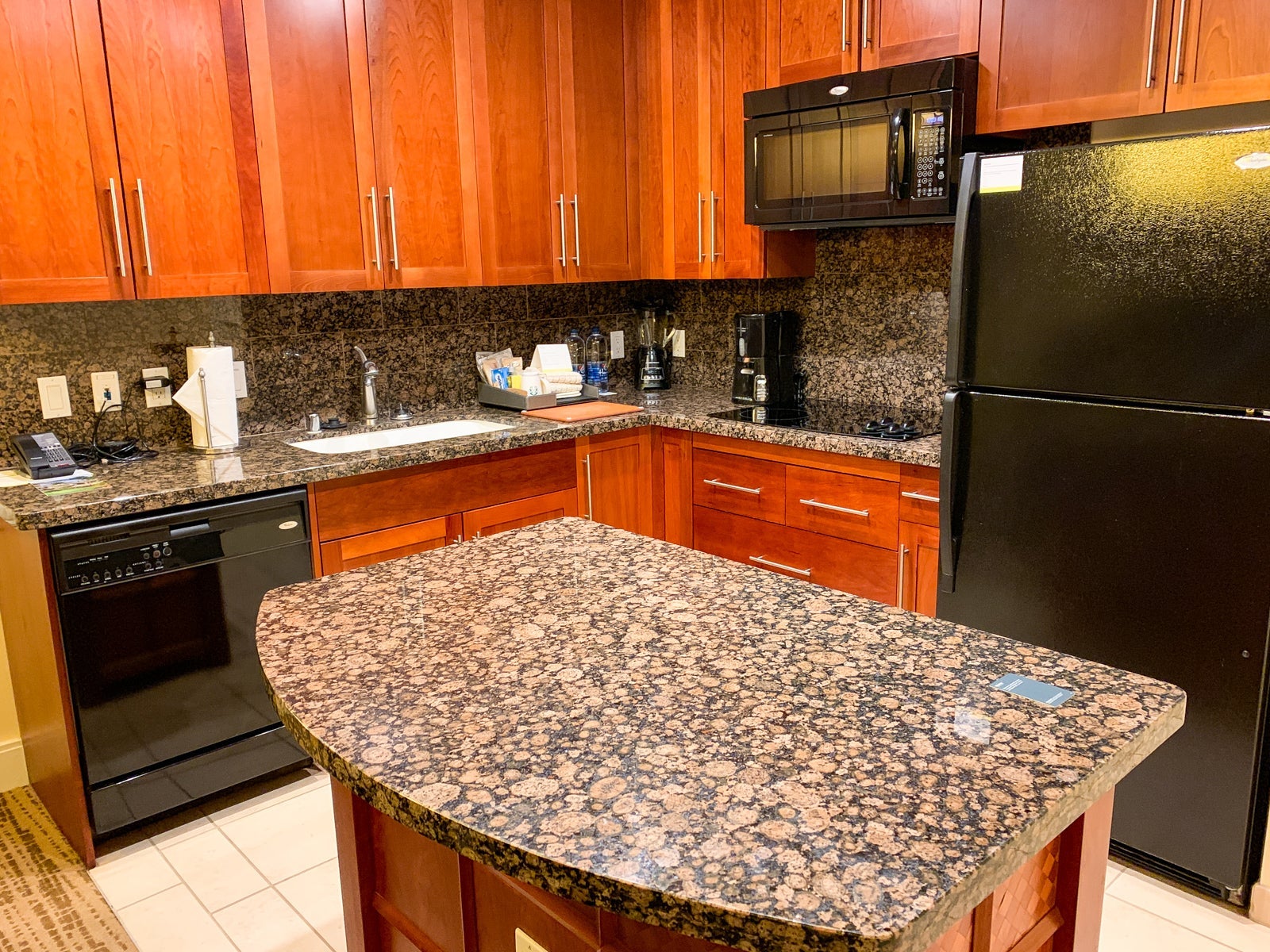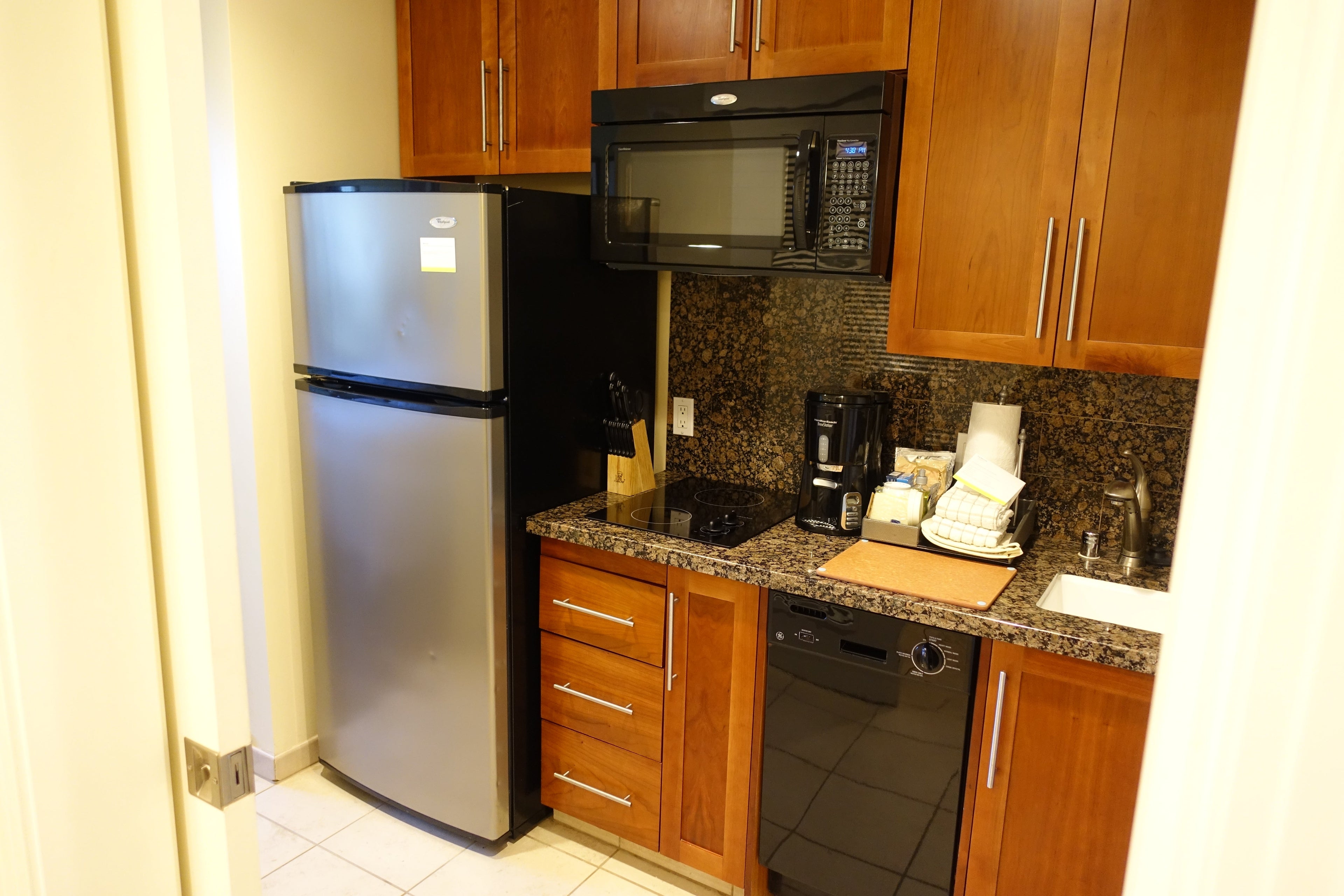 The one-bedroom side of the suite had a well-equipped full kitchen with pots, pans, utensils, etc., in case you wanted to cook up some meals. To get you rolling, there was also complimentary dish soap, laundry detergent, dish towels and all the supplies to make coffee.