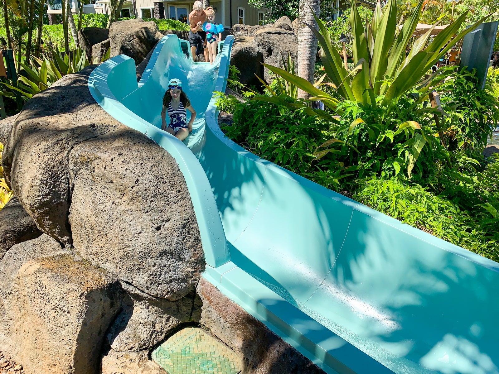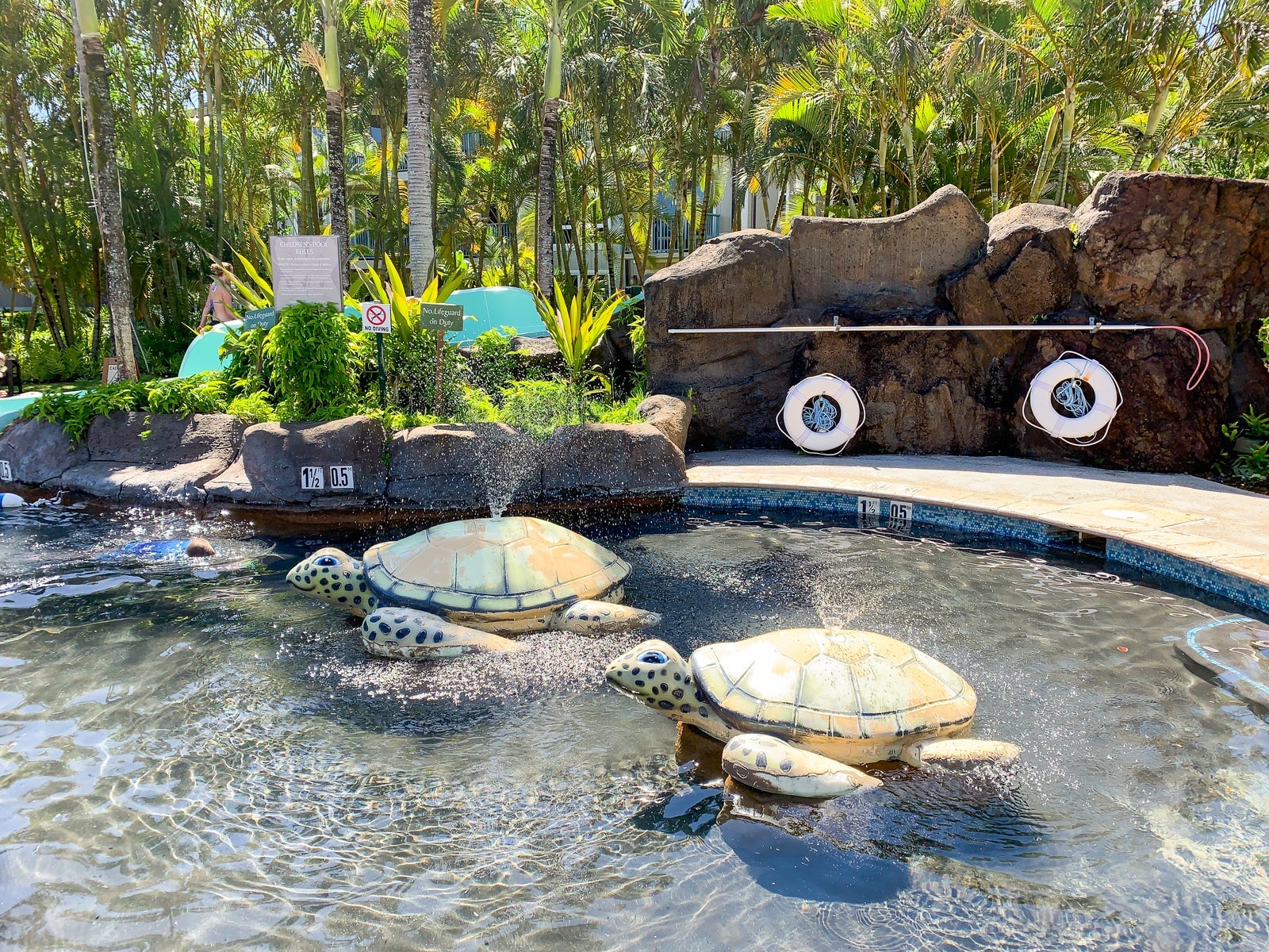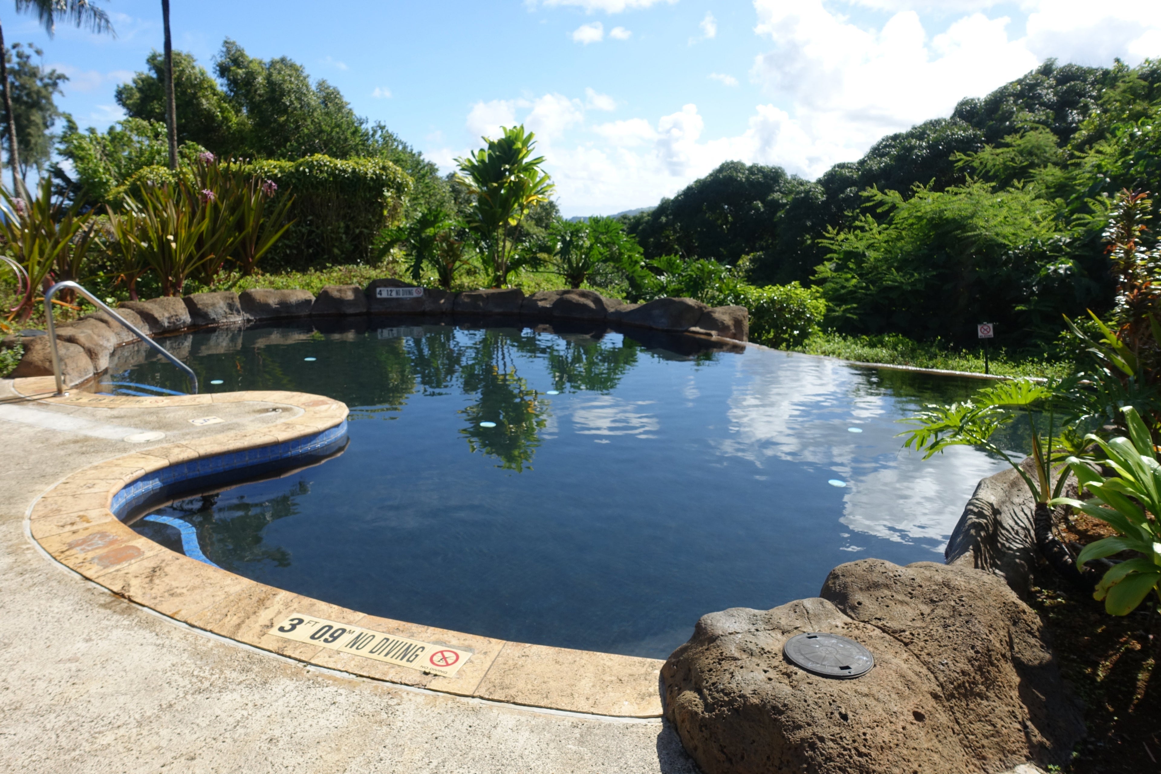 The resort has four pools and two whirlpools: the two-tiered main pool, a pool for kids with a waterslide, the Malie plunge pool and the Na Pali plunge pool.