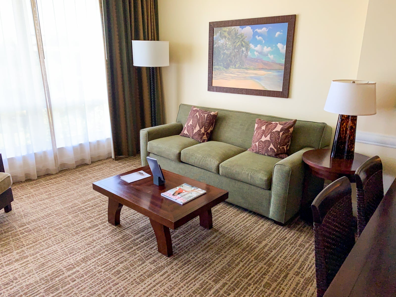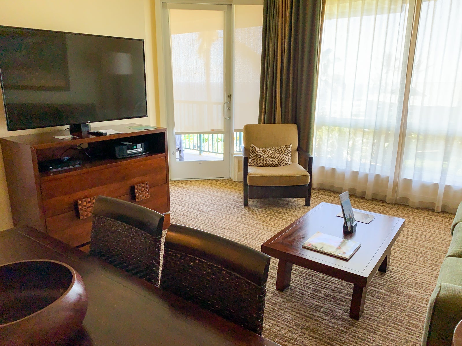 There was also a good-size living room with a sofa, coffee table, TV and balcony with a view. It's easy to see how a family could be comfortable here for an extended stay.