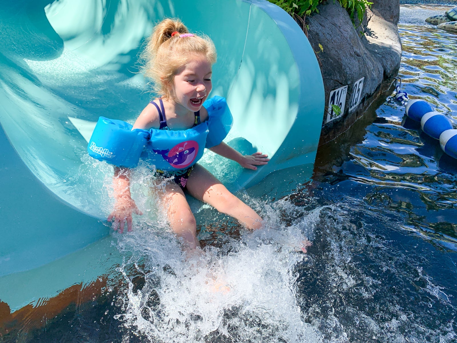 This waterslide and children's play area was simply perfect for my almost-4-year-old. She could handle the slide on her own, but the slide also managed to keep the attention of my 9-year-old for at least a while. And there was shade.