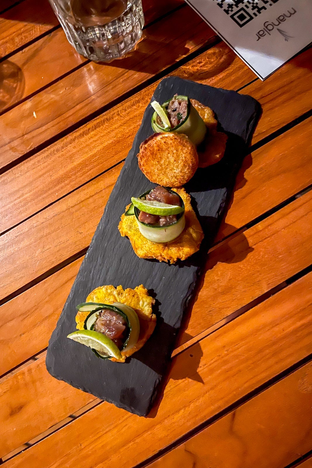 It was somewhat difficult to get a reservation for dinner, which was unfortunate as most of the restaurants required it, so be sure to call as soon as possible in the morning. My sister and I love seafood, so we decided to try Manglar, the designated seafood restaurant. I got surf-and-turf, which consisted of steak and shrimp and was overall average. The macarons were good, and I ended up asking for more.