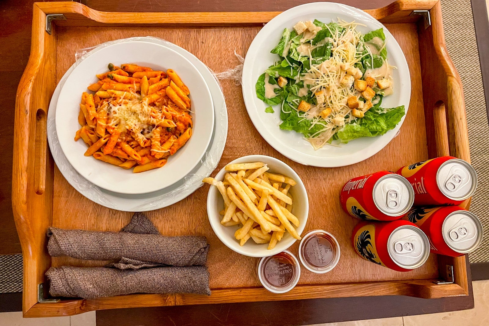 Food was the real letdown of the entire experience. I would consider myself a "foodie," so I typically have high expectations for food and drink whenever I'm traveling, no matter where I am. We ordered room service the first night we were there (our flight was delayed, so we were later than expected), and it was subpar. My sister's pasta was better than my pepperoni pizza, but the cold Imperial beer made up for it. The fries and salad were meh.