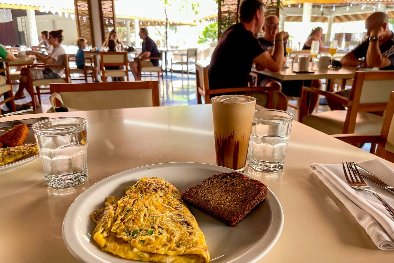 The next morning we visited Mitra, the buffet for all guests, and breakfast wasn't bad. I had an omelet, which was customizable and made right in front of me, and a frozen coffee drink that satisfied my caffeine cravings.