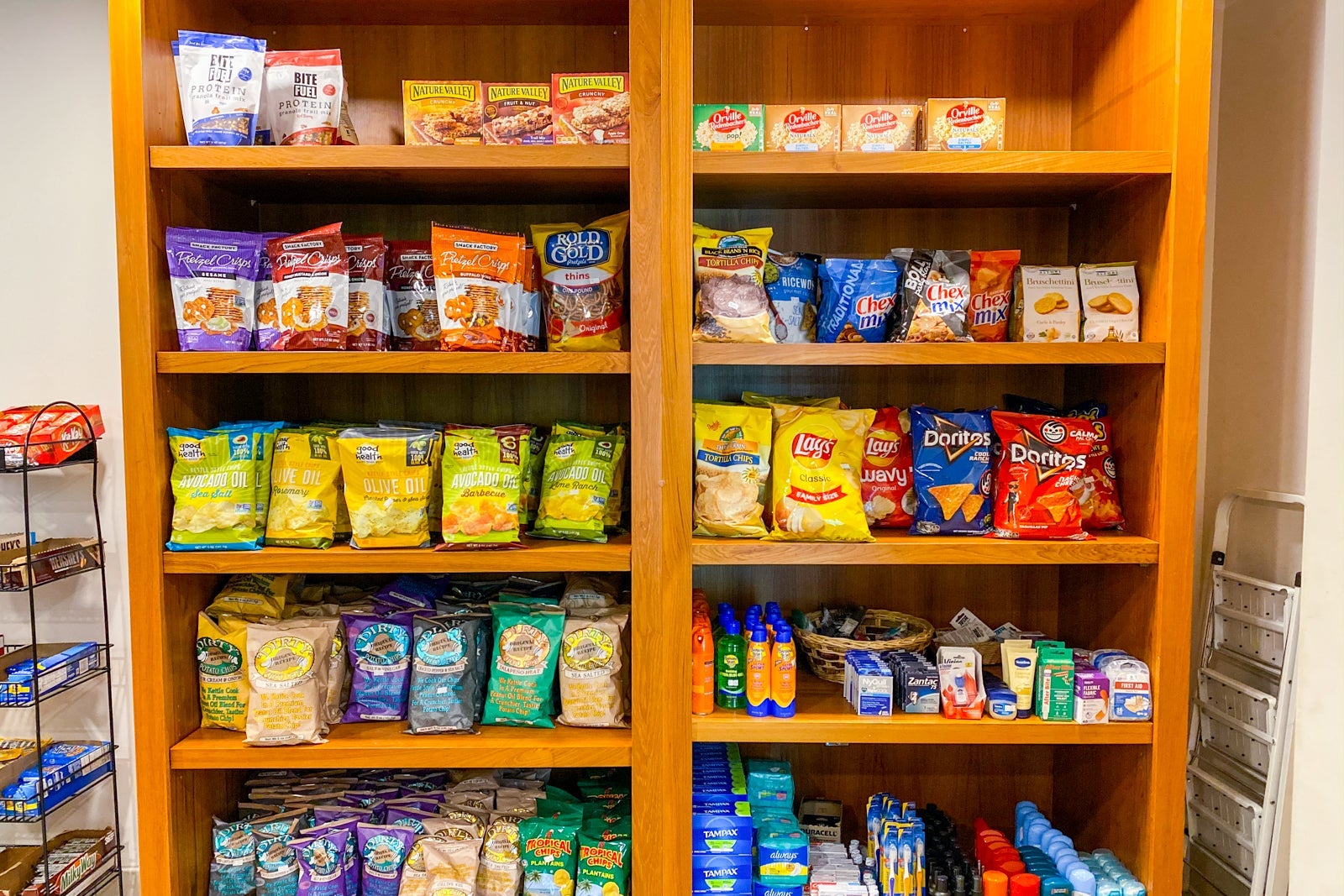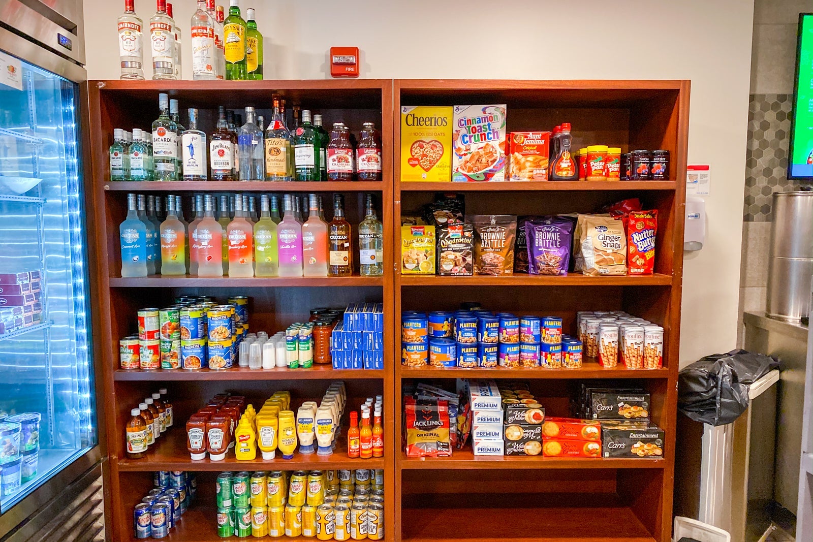 Prices were exorbitant -- $8 for a bag of pretzels, $7 for a box of Cheerios and $3 or more for a bottle of water. There were a few loaves of bread, some spreads, pastas and meats that you could purchase and cook in your private kitchen.