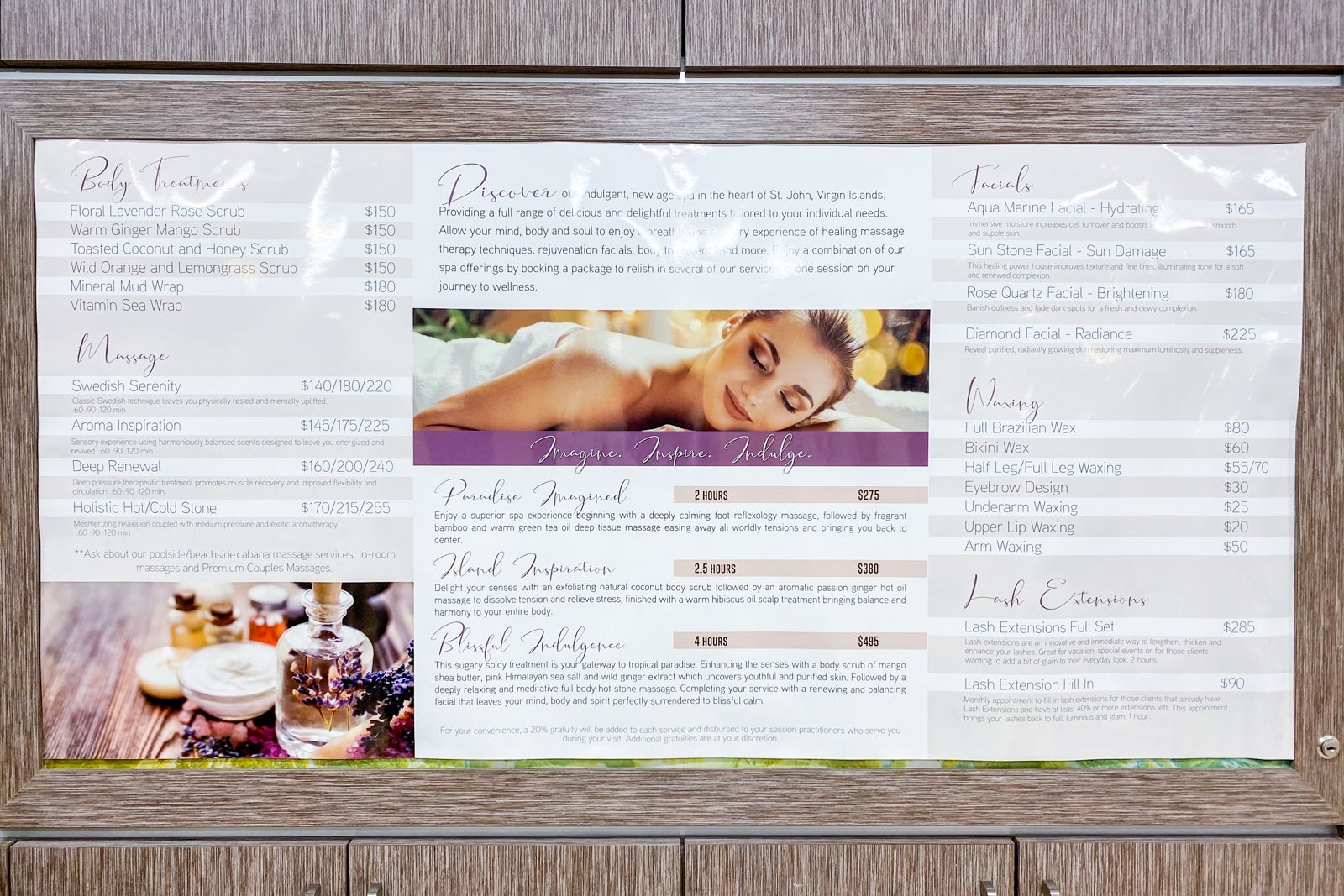 The hotel's spa is outsourced to the Sugar & Spice Spa and is located in the same complex as the gym. The spa isn't open daily, so you should definitely make a reservation. The service menu was displayed on the wall in the reception area.