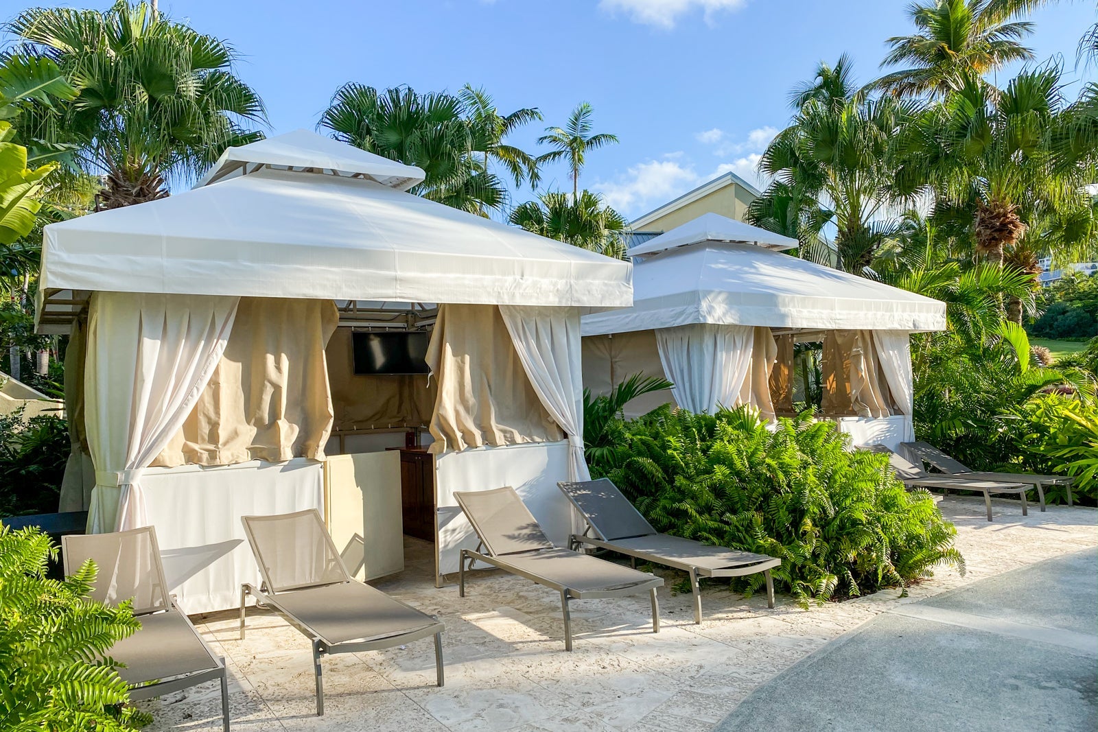 Cabanas could be rented for $90 for a full day or $45 for a half-day. Aside from guaranteed seating, cabanas included bottles of water, extra towels, a TV, refrigerator and personal safe.