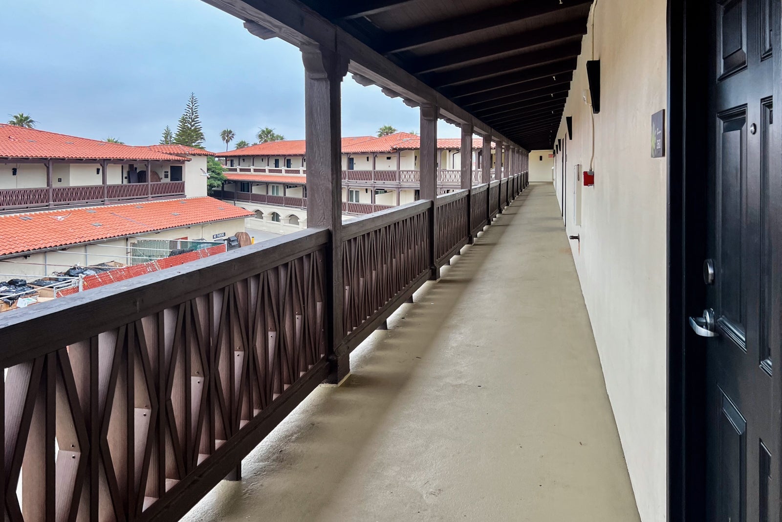 Back in the living room, my balcony was up against an open-air hallway leading to an elevator. It felt odd to have patio seating adjacent to a busy walkway. For this reason, we didn't use it very much.