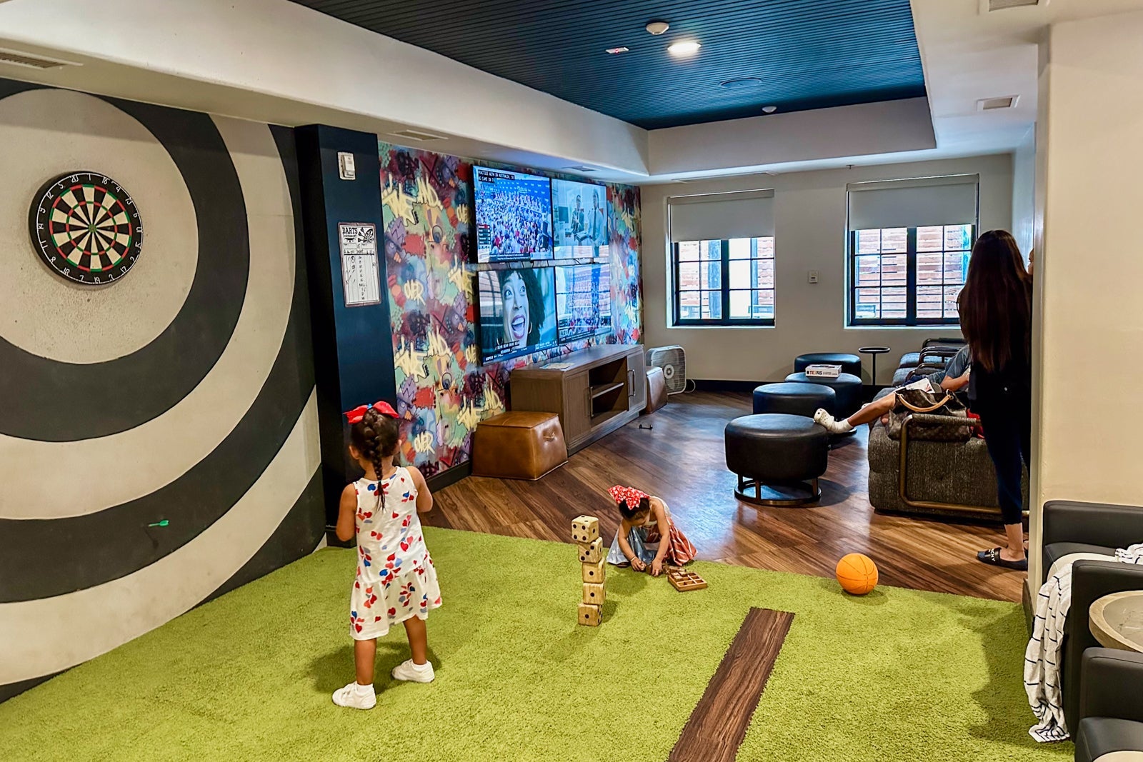 Part of Dive (the bar area serving food and drinks to people at the pool) was a game room with board, card and arcade games, as well as darts and pinball. All of these were free to use on a first-come, first-served basis. Most of what they had to play with was geared to older kids, though my 3-year-old still liked it.