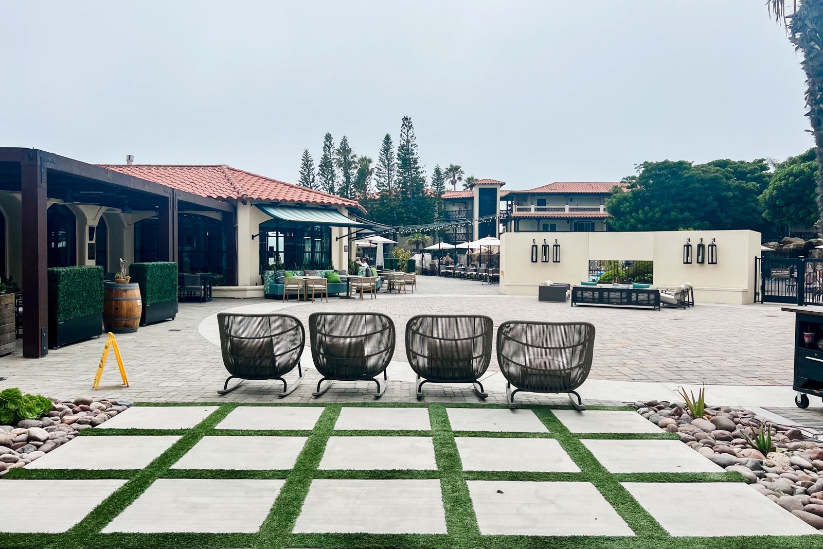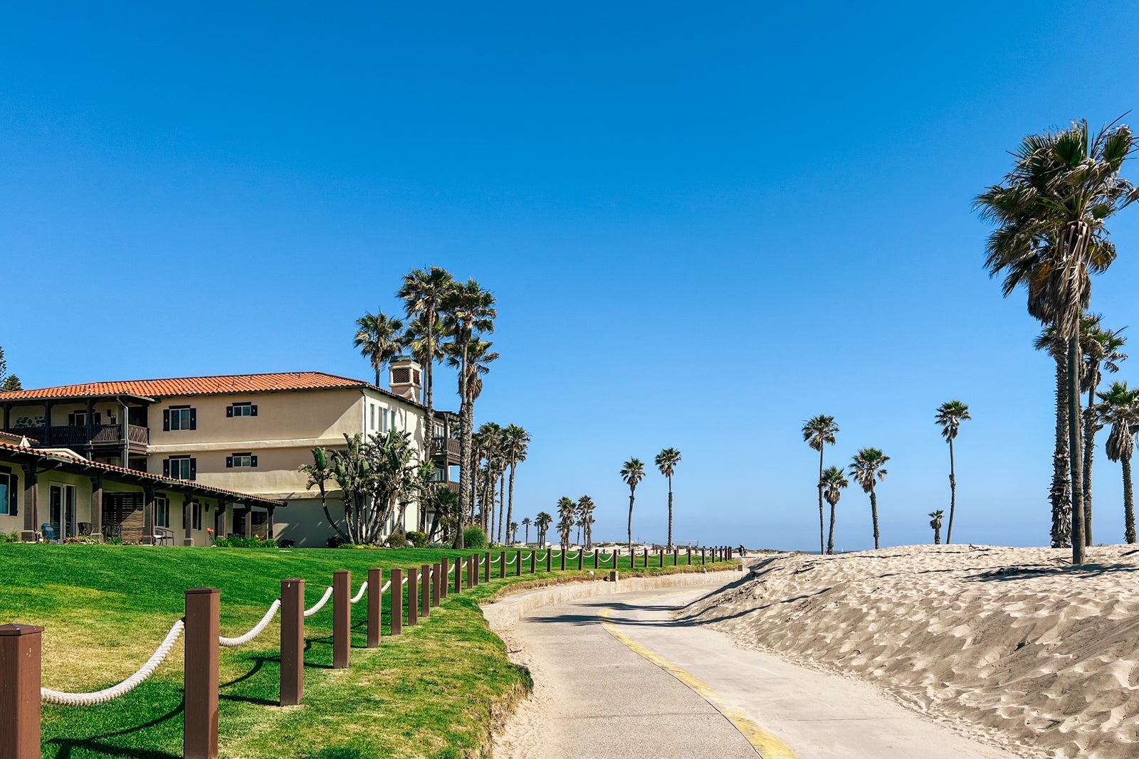Now, following a full-scale renovation from its Embassy Suites days, the hotel has a California cool meets Mediterranean feel with terra-cotta tile, dark wood fixtures and arched walkways alongside manicured grounds with picturesque ponds, cascading waterfalls, lush landscaping and bistro lighting over a central courtyard that leads to the beach.