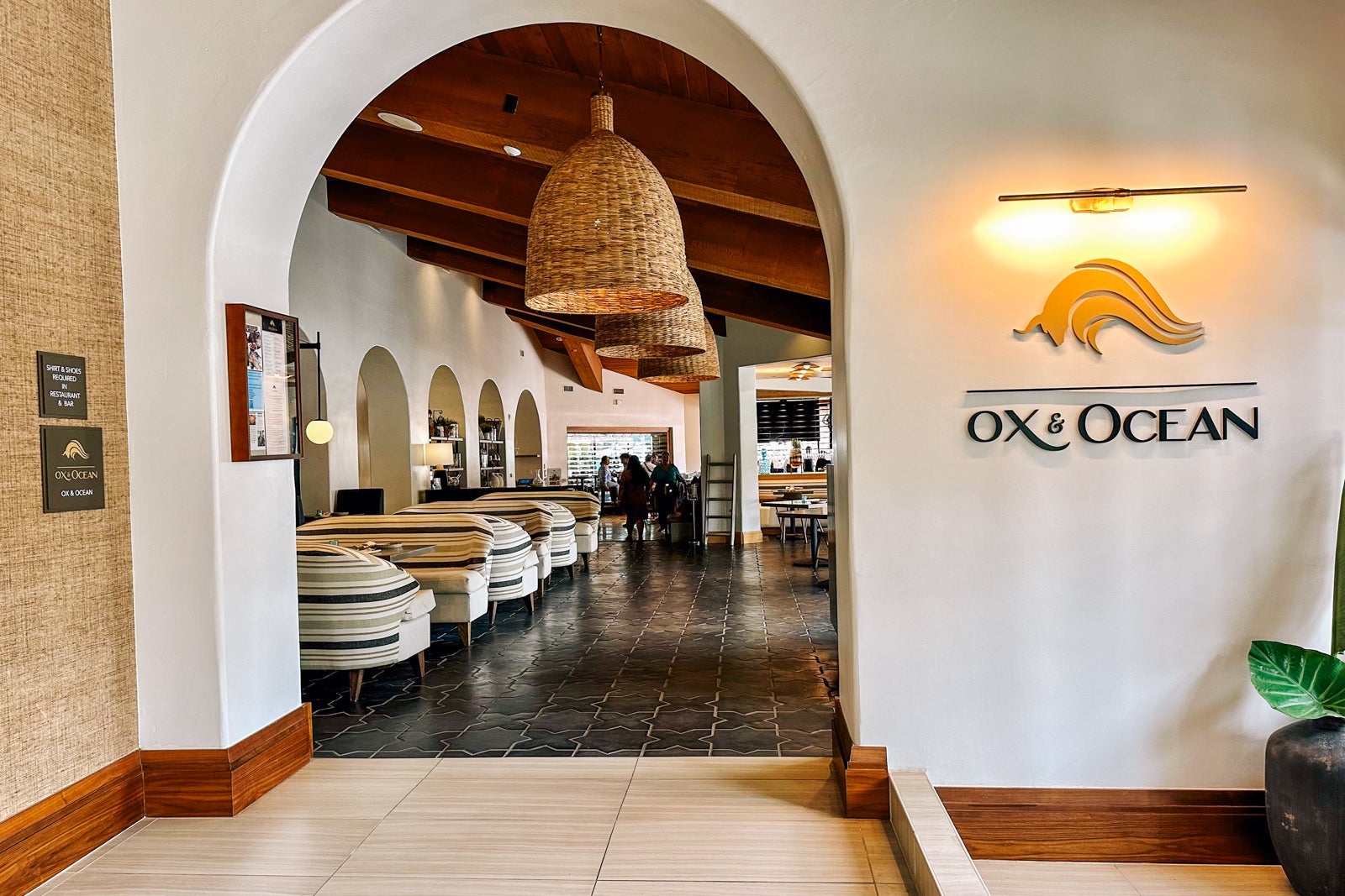 The hotel has three dining venues. The upscale Ox & Ocean, which connects from the lobby and flows into a central courtyard facing the beach, is a beautiful venue, but we skipped it to keep things more casual with our young kids.