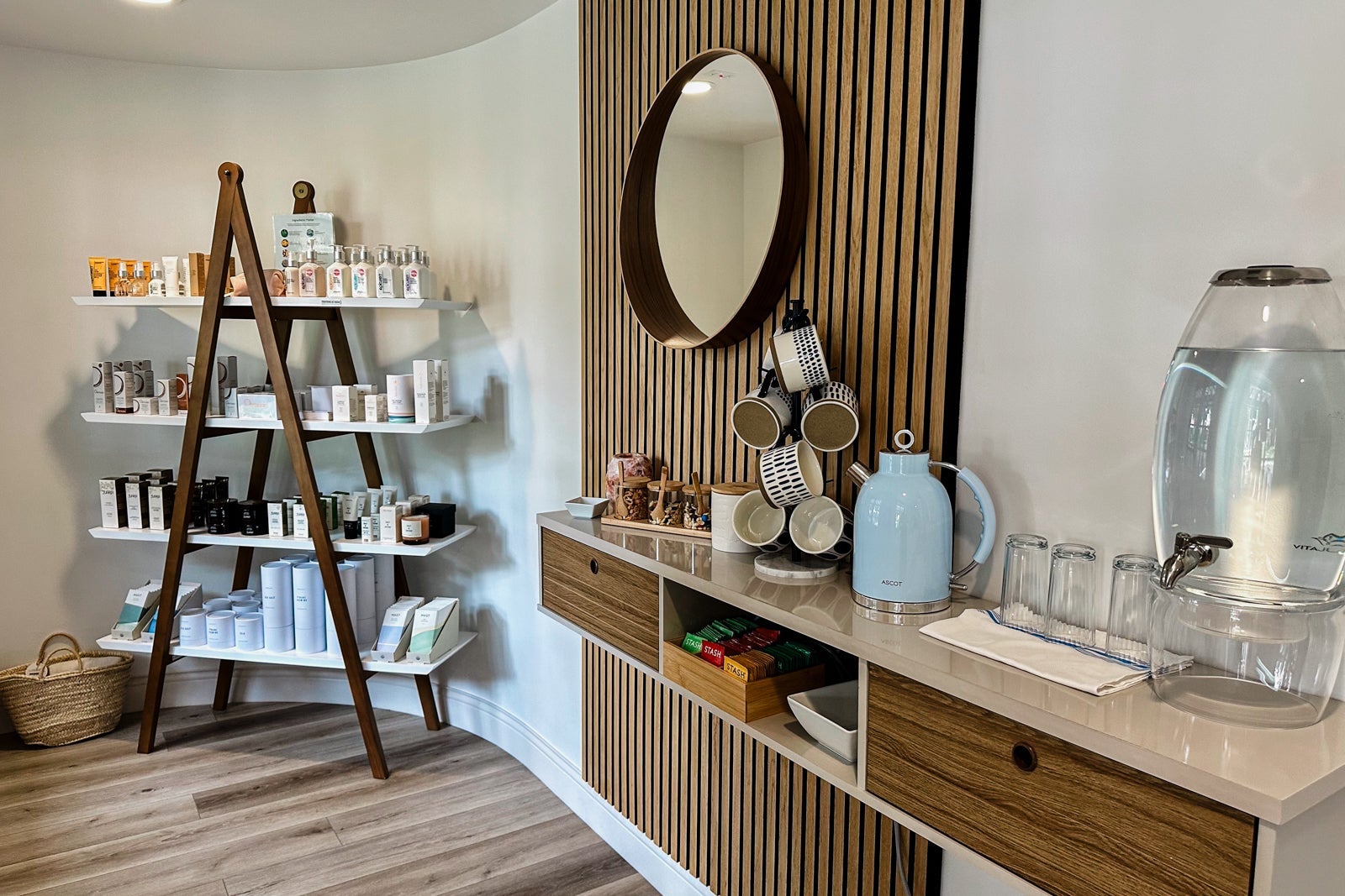 On the other side of the gym was a small spa. I took a look inside and saw a nicely curated shop with jewelry, candles and clothes. The spa itself was a small facility with just a bathroom in lieu of a locker room and a handful of treatment rooms.