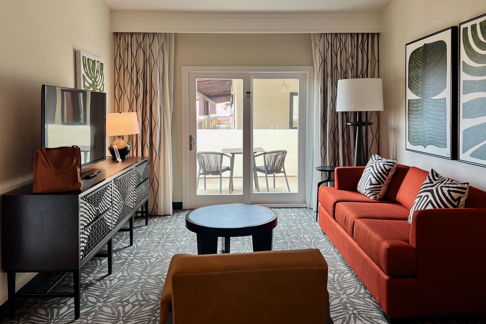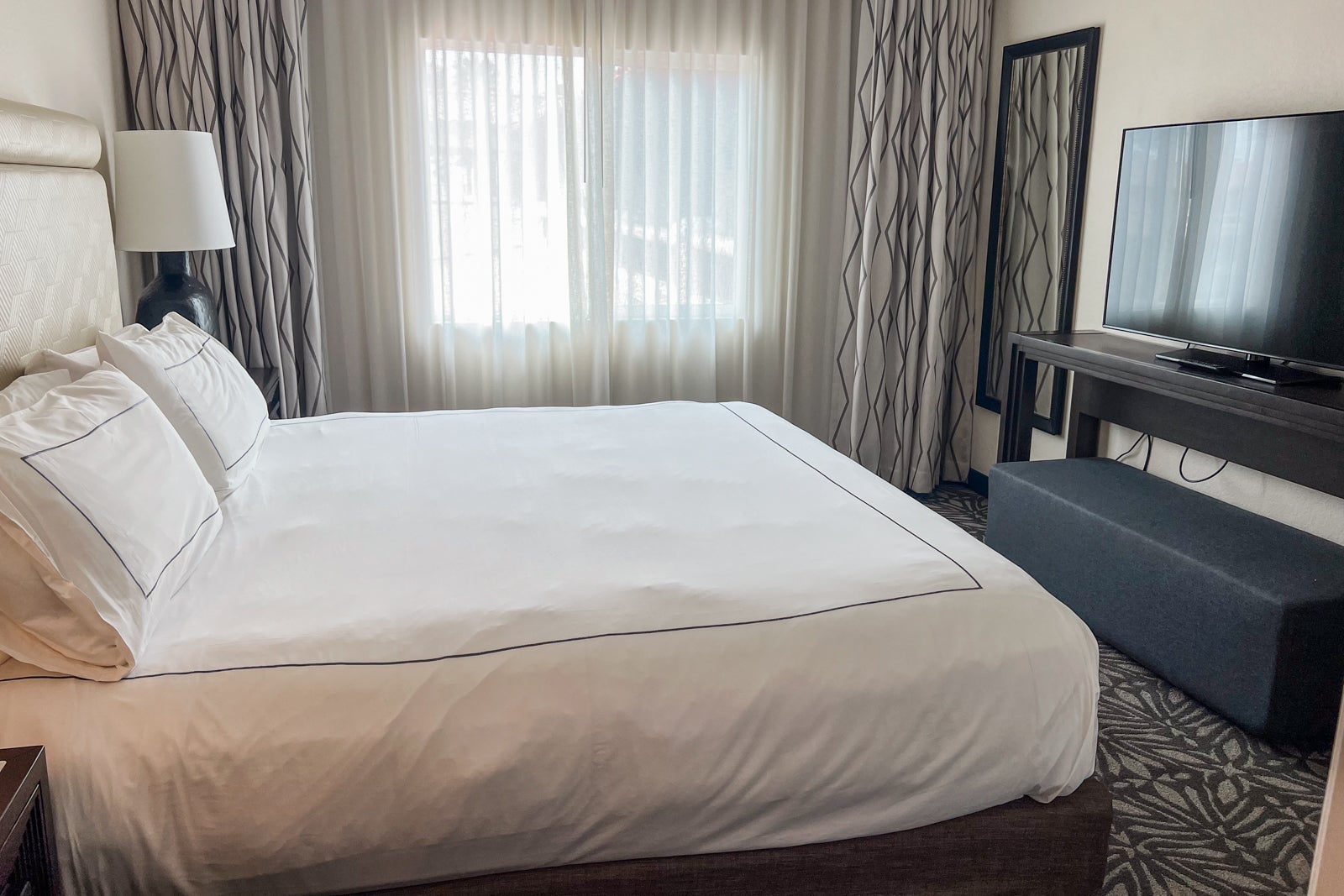 My reservation was for a standard one-bedroom suite with a king bed. That meant I wouldn't have a premium view facing the ocean or pool. Initially, I was okay with it. I figured we'd be out of the room for most of the trip, and as an experienced traveler with little kids, I knew it was unrealistic to expect that my husband and I would have much time to sit and clink drinks on the patio in peace.
