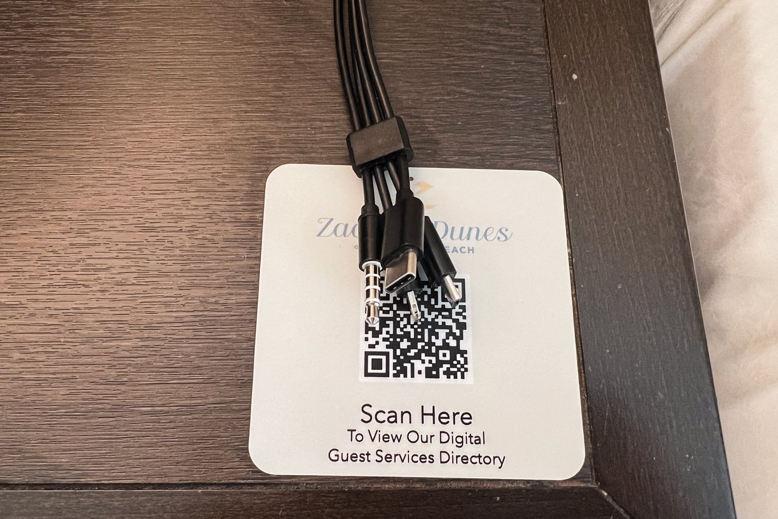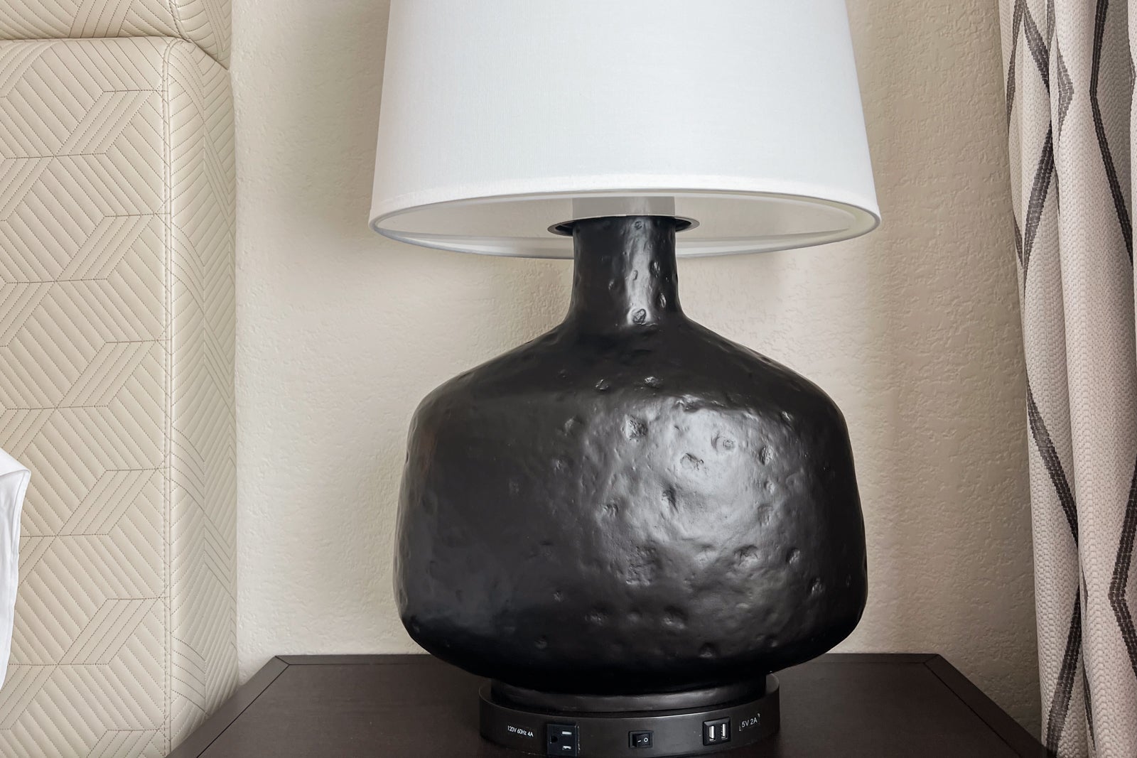 The nightstands had lamps on either side, each with built-in plugs. I especially appreciated the multicord charger cables provided for various USB device types. This came in handy when I realized I forgot the charging cords for my daughter's travel night-light and sound machine.
