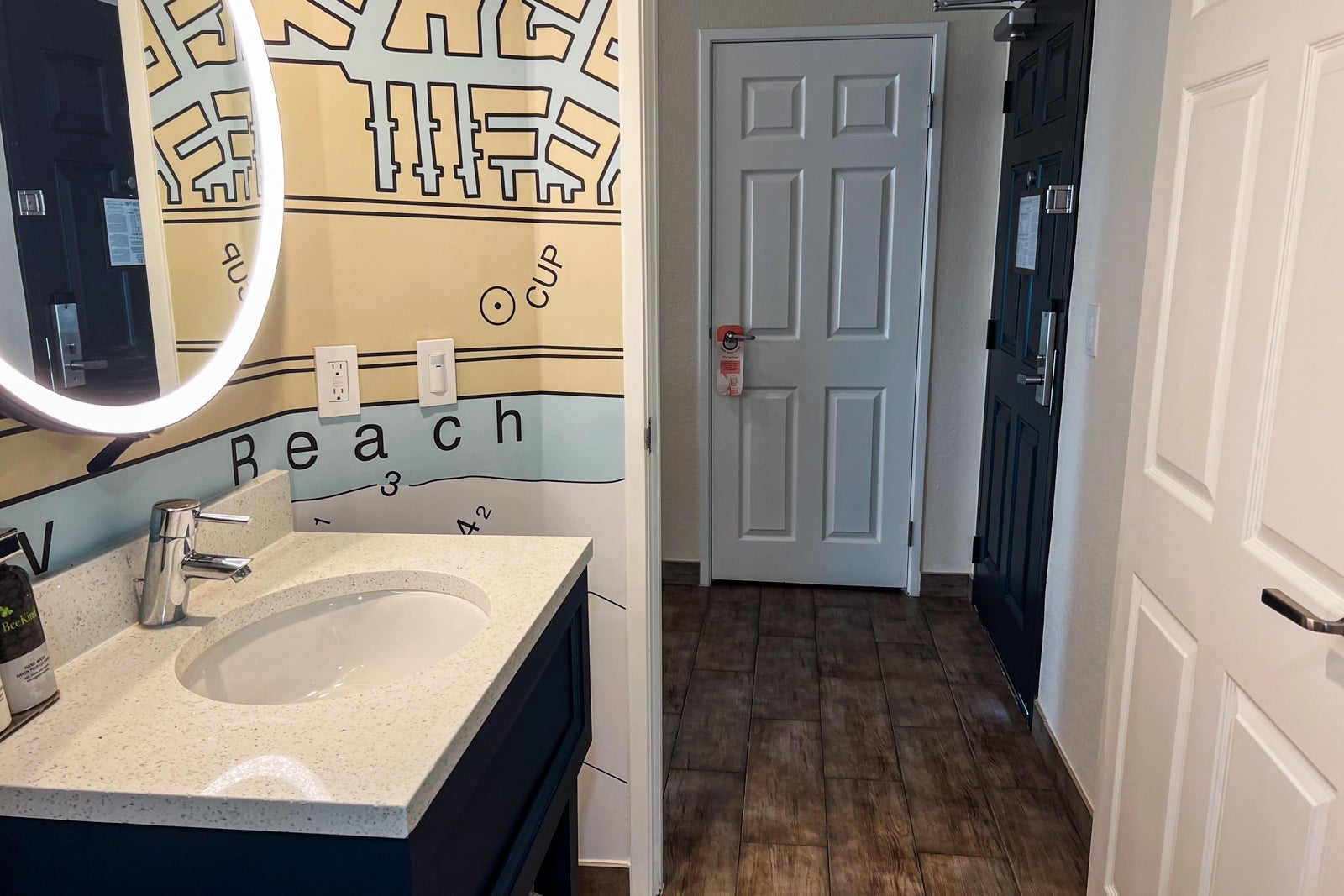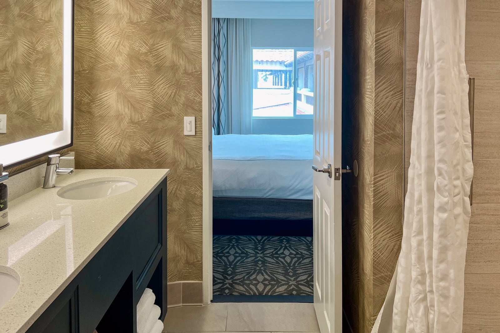 To my left was a full bathroom. I was pleasantly surprised to find that there were two bathrooms in the suite. This was especially useful when my baby was napping in the bedroom, and the rest of us were out in the living room.