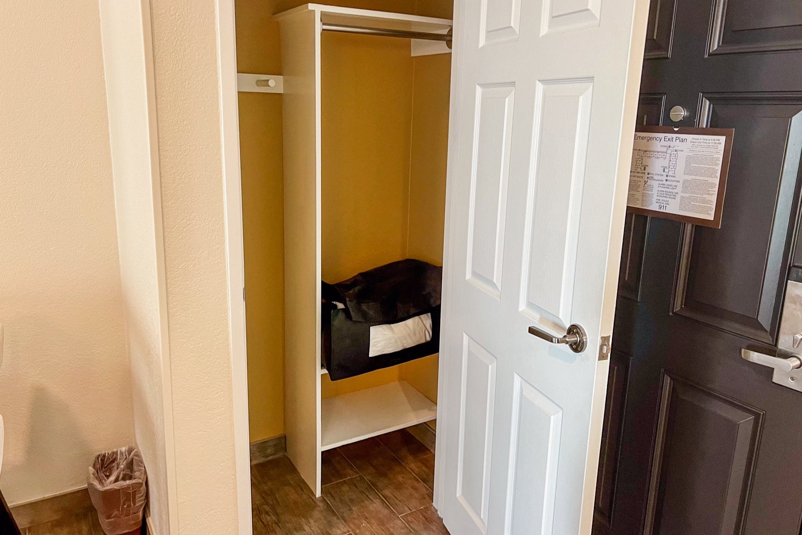 To my right was an empty closet, aside from a bedding kit for outfitting the pullout sofa.