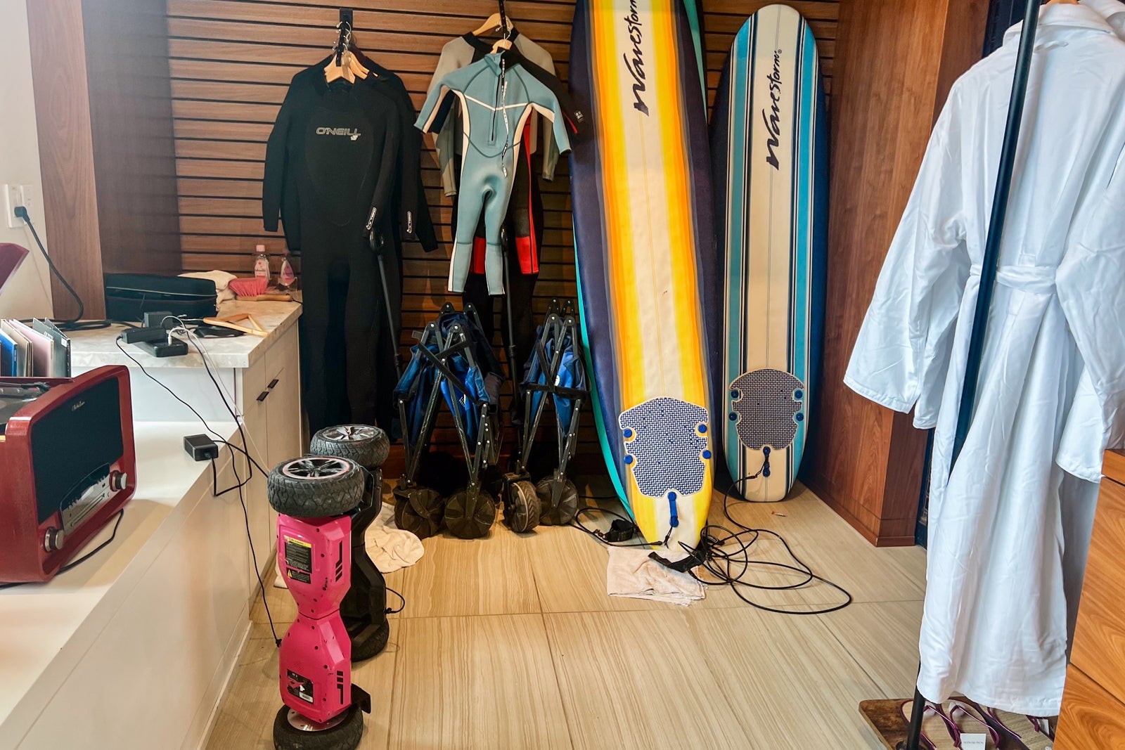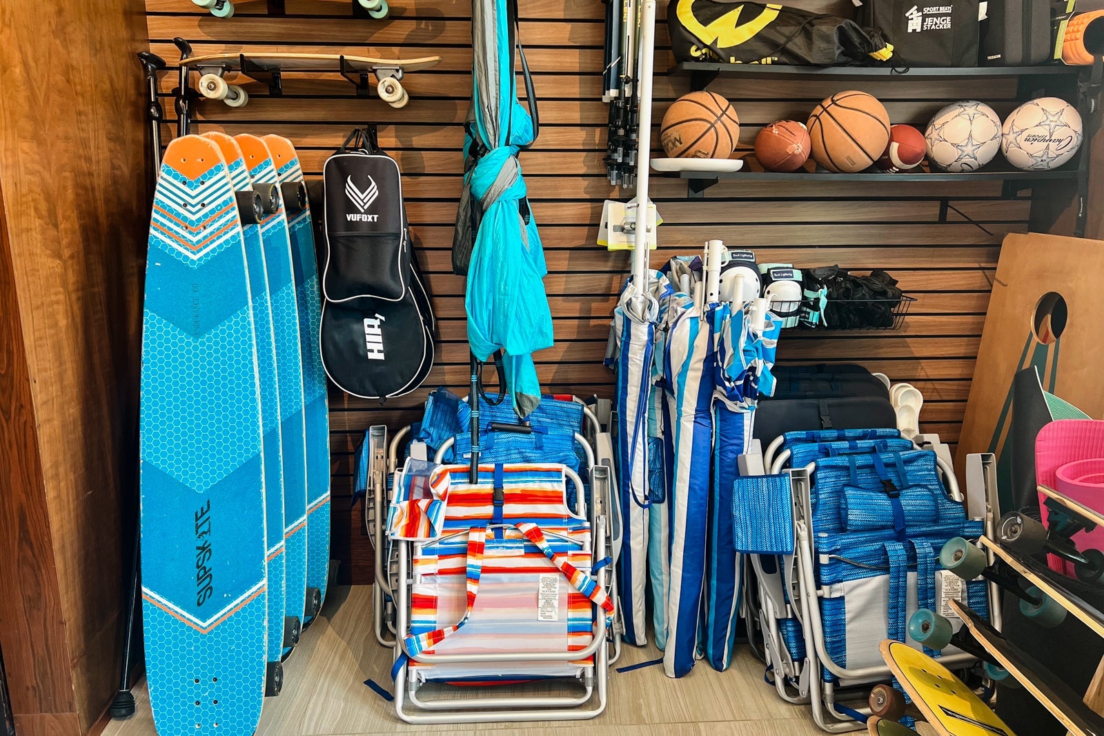 We borrowed two beach chairs for an hour the first day and then ended up going to Walmart to buy our own since we needed some anyway. They cost around the same as one day of resort fees, and now we have them forever. However, the shop does rent a wide variety of interesting items as part of the daily two-hour allowance, and they go far beyond beach chairs (like surf and boogie boards, wetsuits, hoverboards, board games, basketballs and even a guitar or a Nintendo Switch).