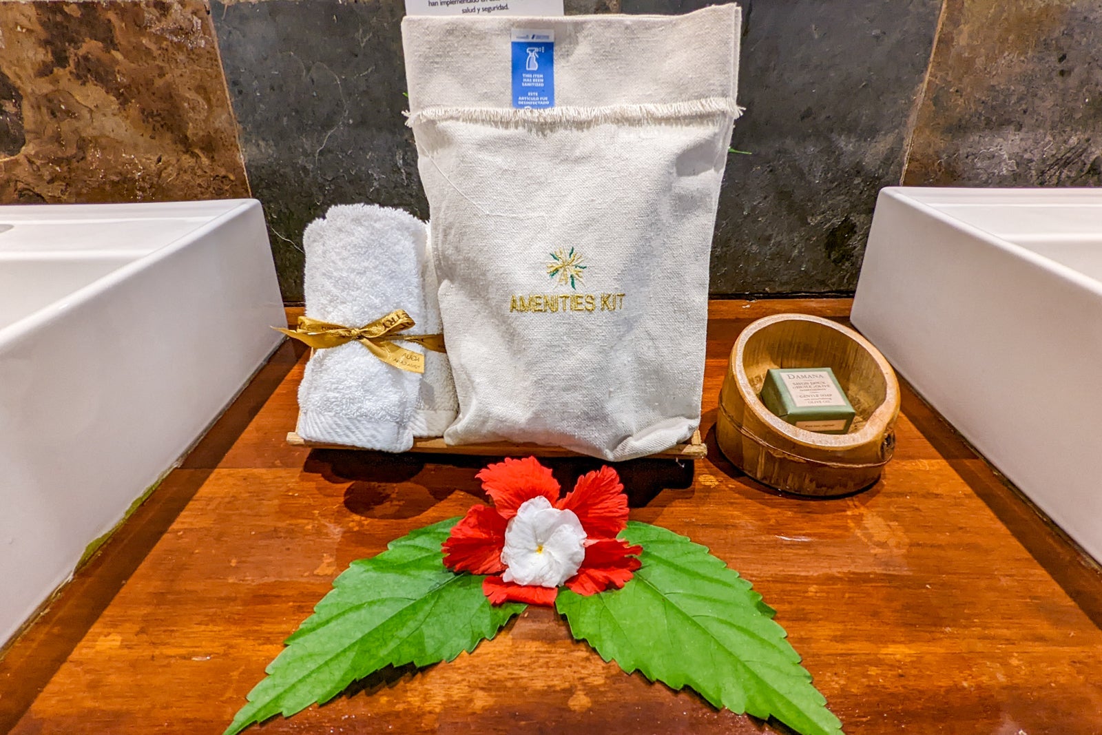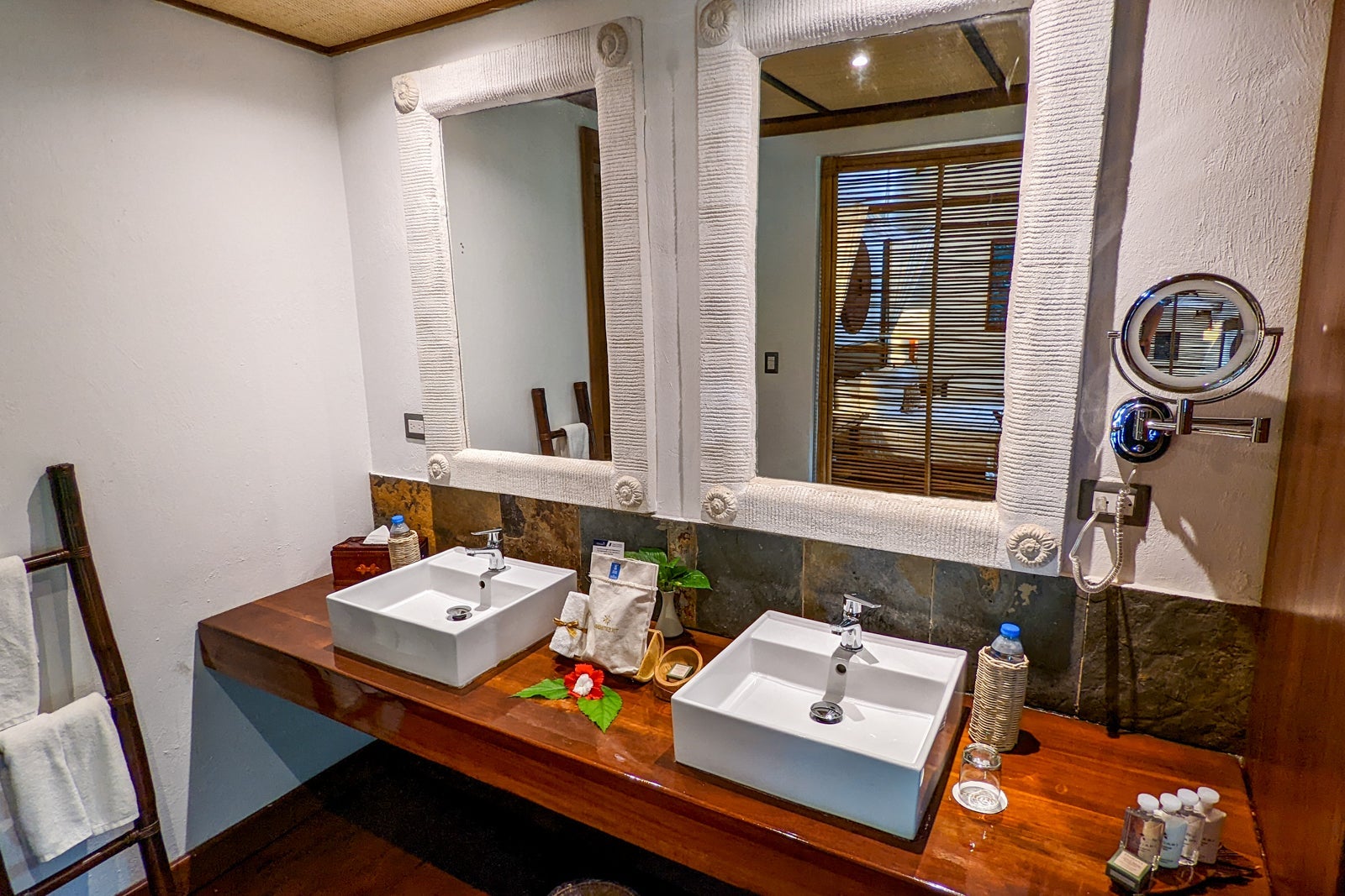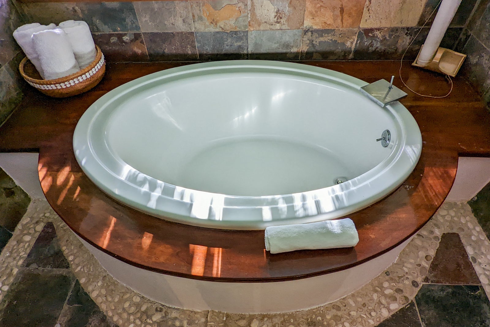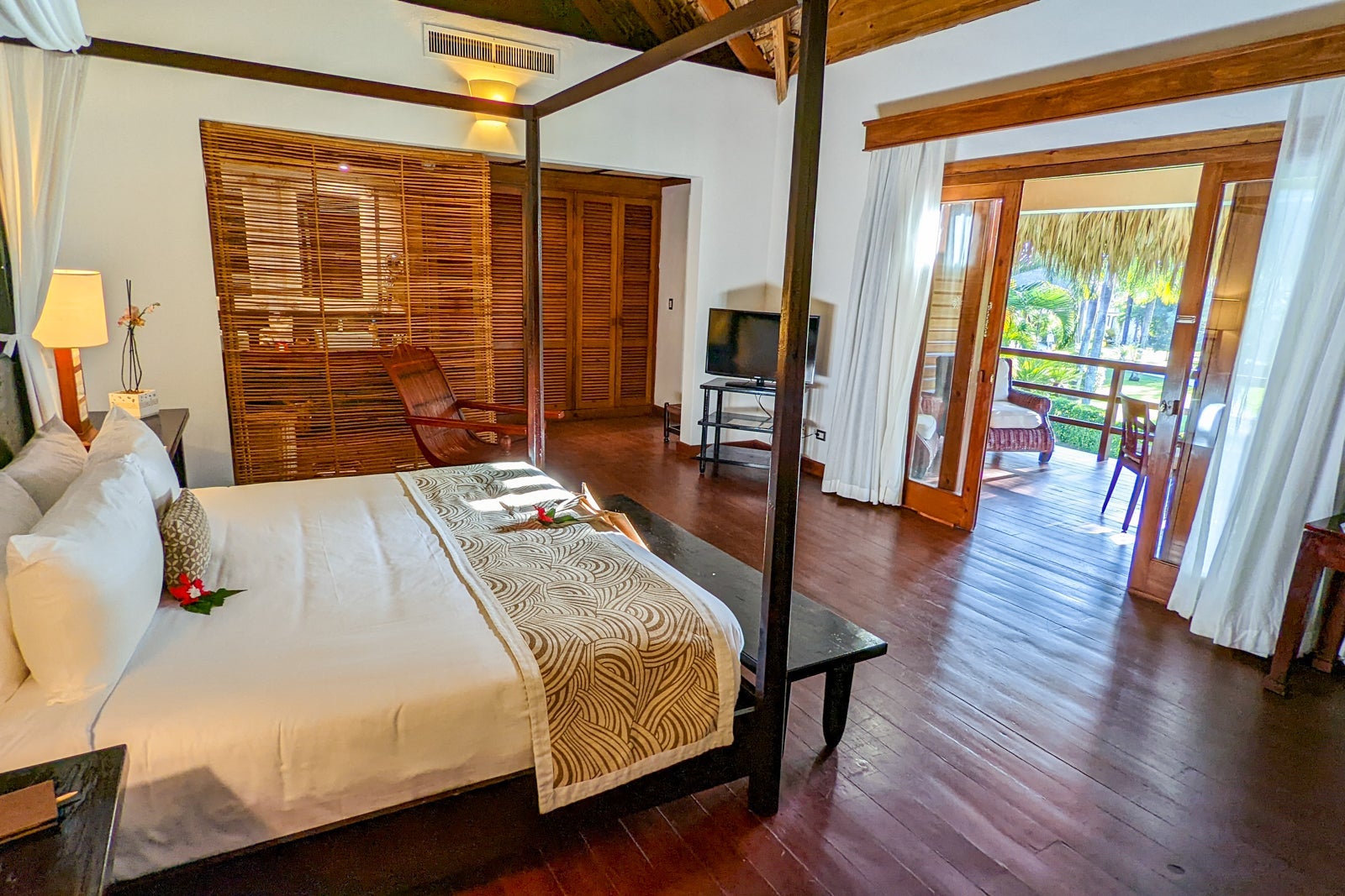 Our garden-view junior suite was located on the second floor, back from the beach, which ensured both a restful night's sleep on the four-poster bed and a lovely view of one of the many swimming pools from the suite's spacious deck. At 775 square feet, it was huge for a base room. I loved the vaulted, thatched ceilings and, while I'm not usually a fan of so much contrasting dark wood throughout, it gave a real sense of place in this tropical setting. A fruit plate, bottle of chilled prosecco and local rum were waiting for us when we arrived in the room. Unfortunately, the fridge stocked with some complimentary sodas and local beers took a good 24 hours to actually chill, but an ice bucket was only a quick call away to speed up the process.