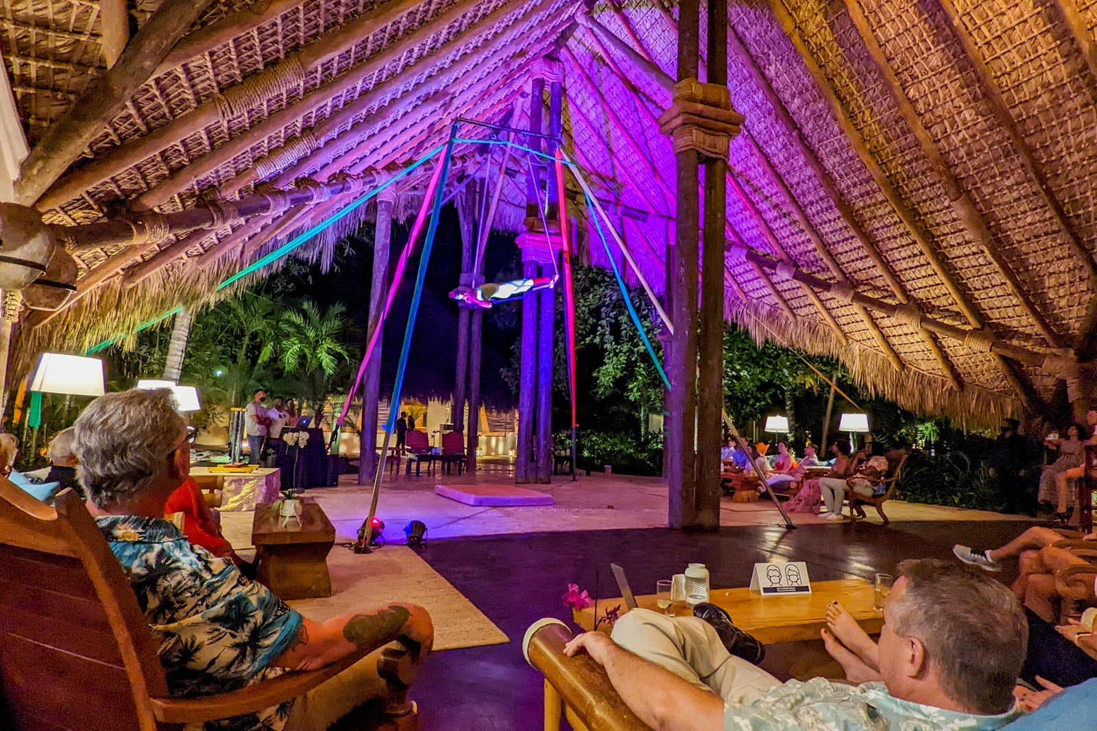 What did impress was the circus show on the first evening. Expecting some basic juggling and slapstick clowning, guests instead were treated to a full trapeze constructed in the resort lobby just for that night with a talented troupe of locals hurling themselves above guests' heads with bartenders ensuring guests' thirsts were quenched. It was a great show and a brilliant use of the space.