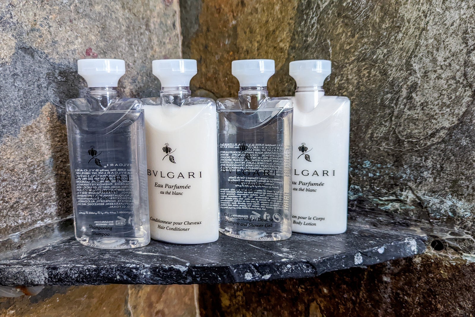 Essentially three separate areas, the bathroom was almost as big as the bedroom. The combination of a huge toilet room, double sink, soaking tub and shower stocked with Bulgari toiletries was a true luxury experience.