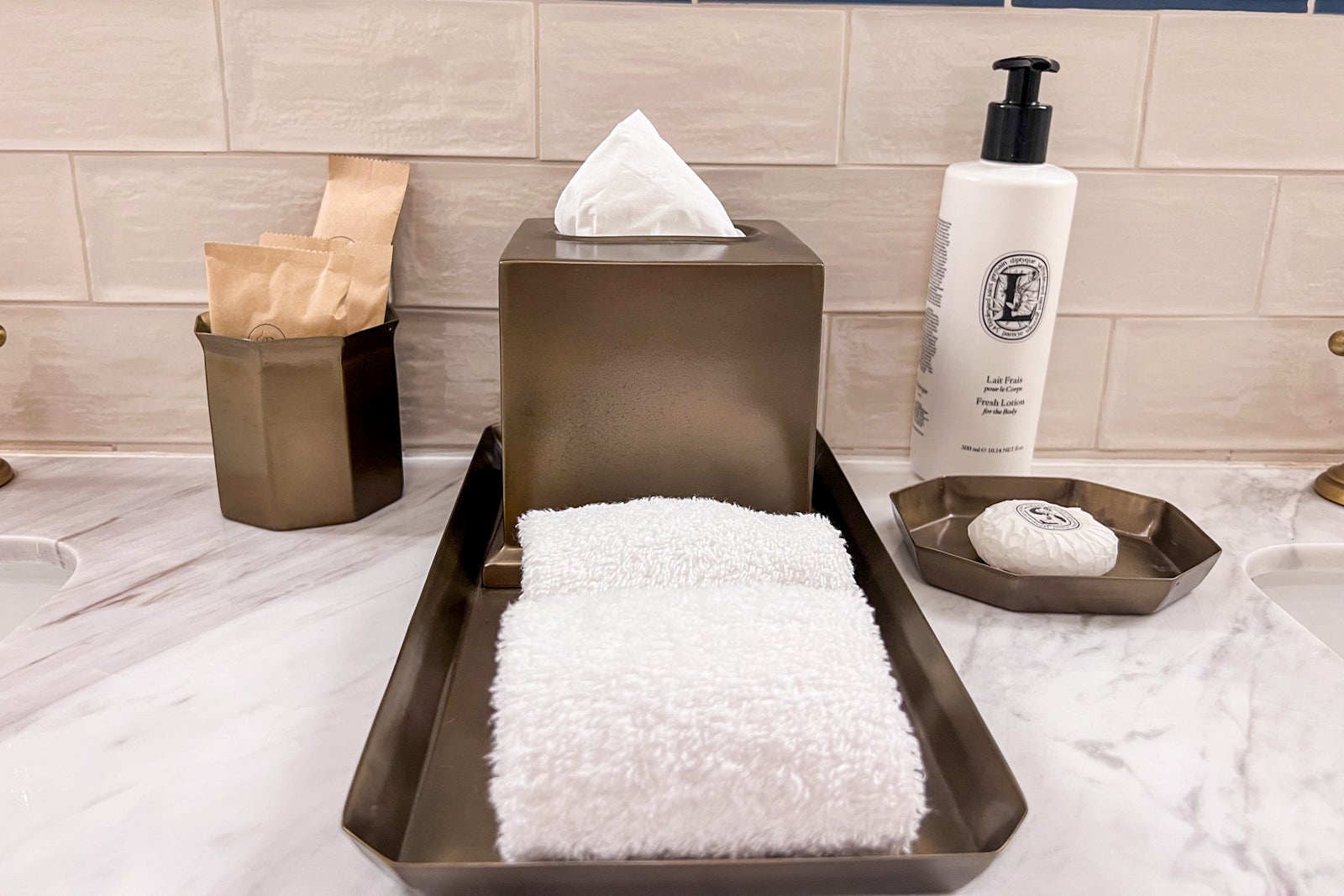 The room was luxurious, but it was also cozy and comfortable. You could control all the lights from a switch panel over the nightstand on either side of the bed, and it was easy to sleep in, thanks to blackout shades over the windows. Housekeeping came by twice a day, and the evening turndown service included drawing the blackout shades and tidying up.