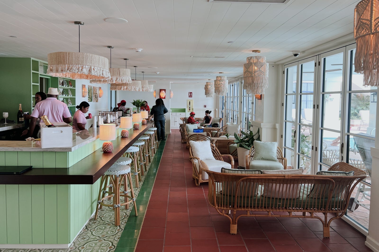 One level below the courtyard is the hotel's pool and bar. This bright space includes a mix of table and counter service with fresh juices, smoothies, ceviche and cocktails.