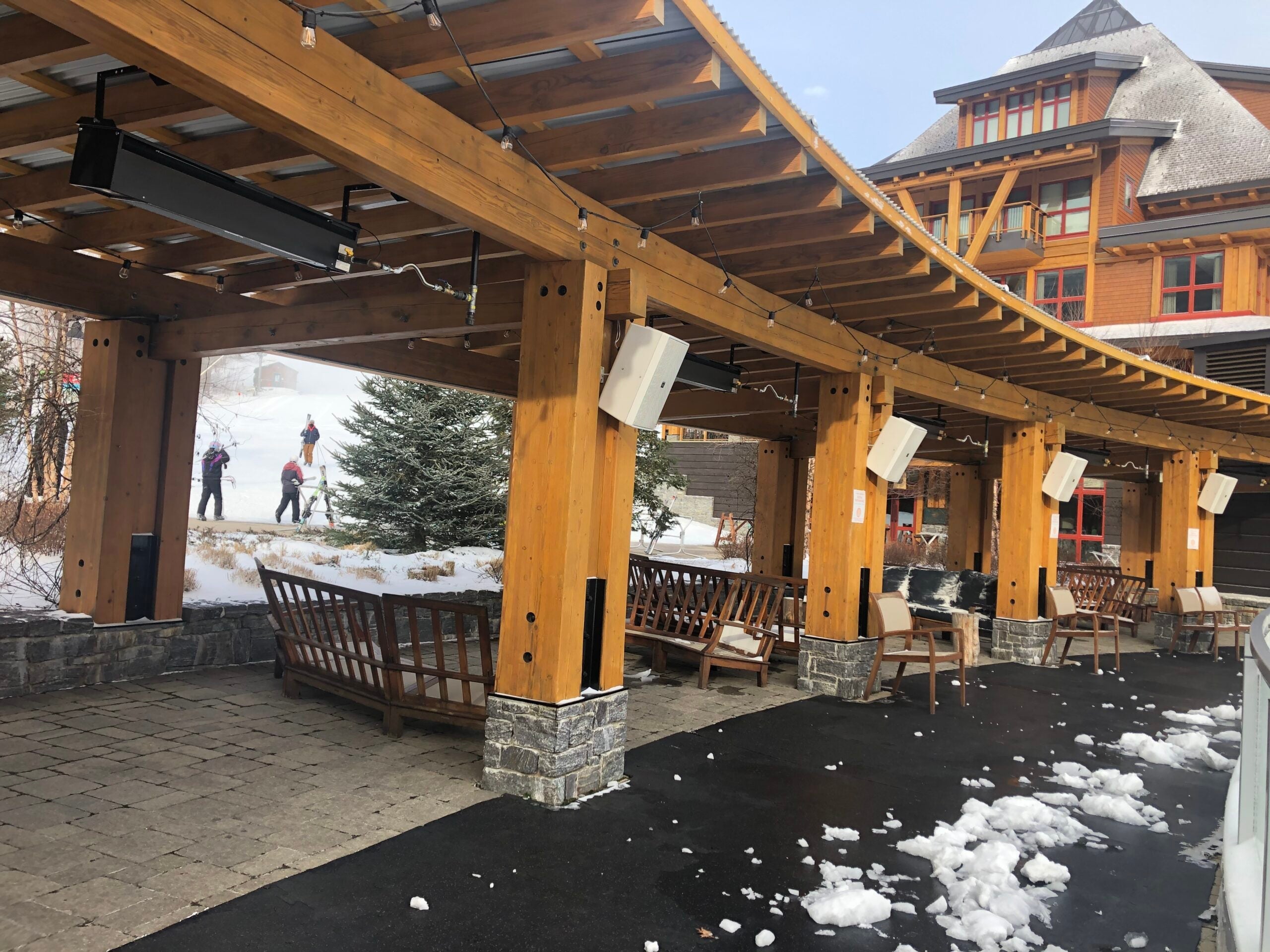 If you want to avoid the lodge, there are many tables and seats set up outside the lodge and throughout the village to allow for outdoor lunch and hot chocolate breaks. You can even order food from the lodge or many of the restaurants through an app to avoid being inside. Many areas also have heat lamps set up to keep you nice and toasty during the cold weather days.