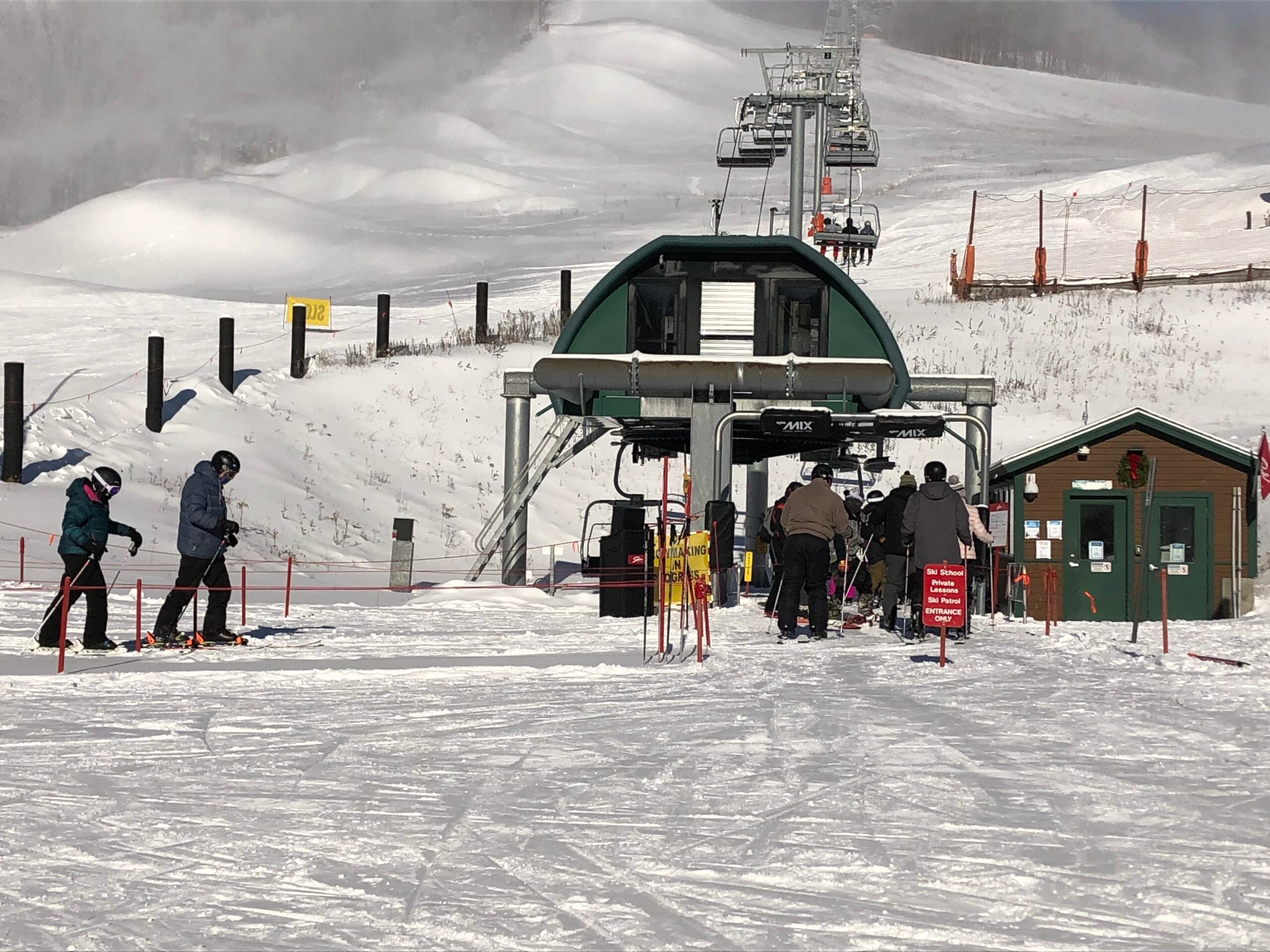 The ski lifts were limited to just one family riding together. If you were in the singles line, on a lift that holds three or more passengers, they put two riders on opposite ends of the lift. When we were there, lift lines were incredibly short, but I have heard that peak dates are getting crowded due to not being able to fill the chairs. My best advice is to go during the week and avoid holiday weekends if you can. Fortunately though, with skis and boards being long in length, you are almost always 6' away from the person in front of you by default.
