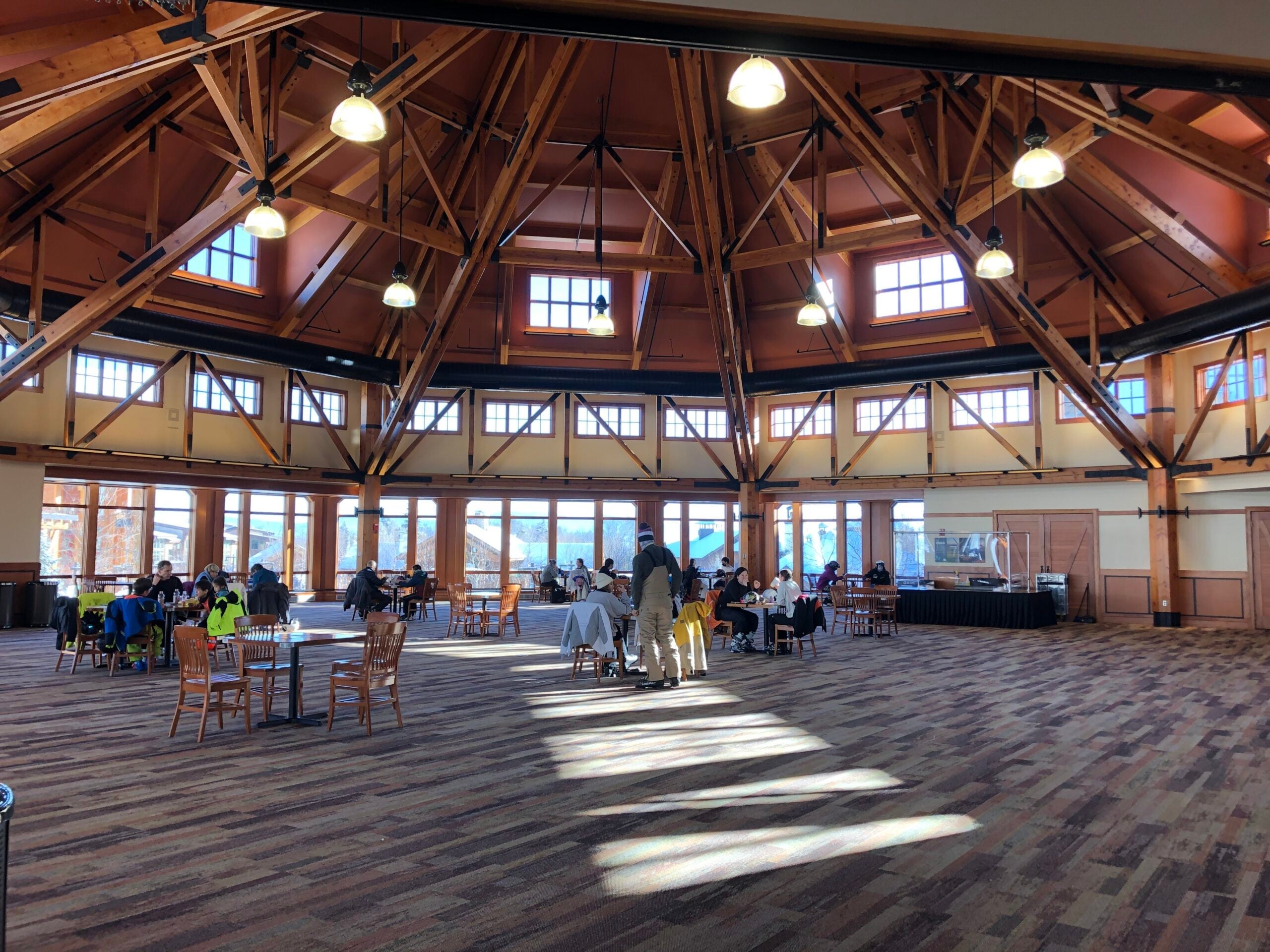 The lodge requires reservations and limits you to just 30 minutes maximum. Capacity was limited and tables were far away from one another. With the high ceilings and protocols in place, it felt "safe", but we were also there on an off-peak ski day.