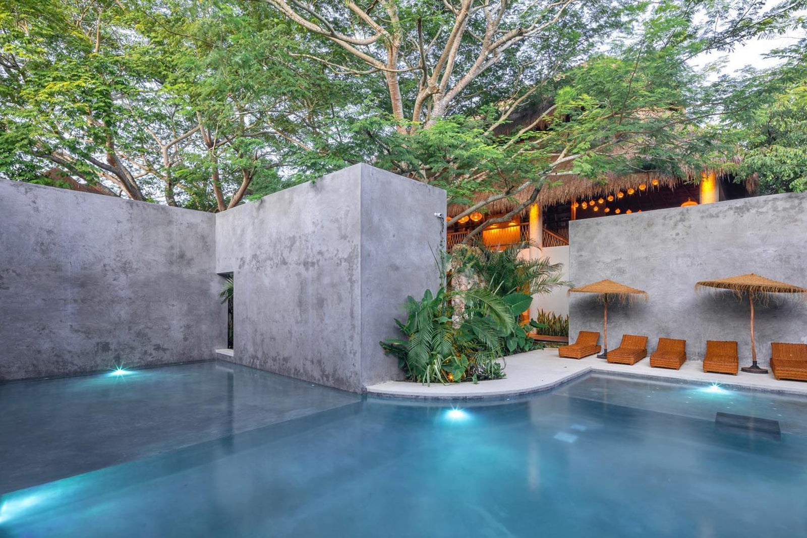 With only nine suites, the small boutique hotel blurs the lines between material and nature, with concrete structures practically swallowed up by a riot of jungle foliage. The design ethos nods to centuries-old ruins in Mexico that have been lost to the jungles with time.