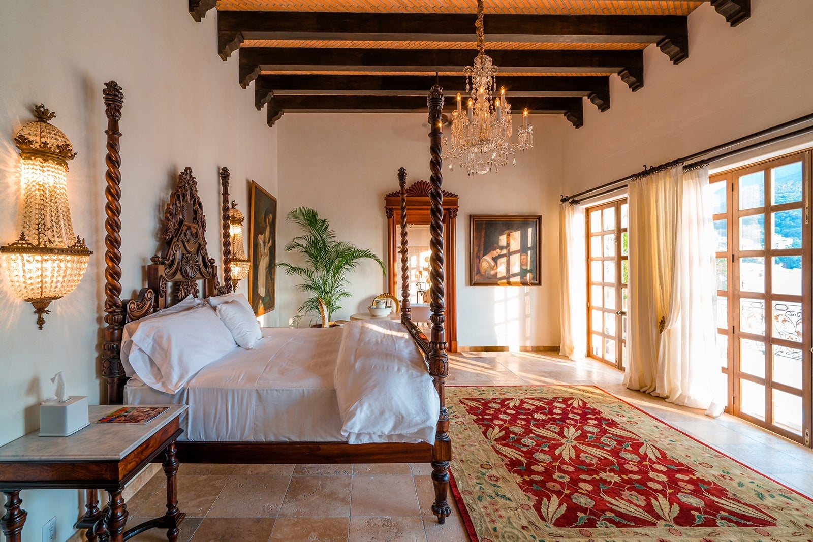 Stepping through the wrought-iron gate of Casa Kimberly is like stepping back in time. The historic, Mediterranean-style villa sits atop a cobblestone-covered hillside overlooking the rustic red tile rooftops of Puerto Vallarta's Zona Romantica. Inside are glittering chandeliers, colonnaded terraces and a striking, larger-than-life-sized portrait of Elizabeth Taylor, her blue eyes practically piercing your soul.
