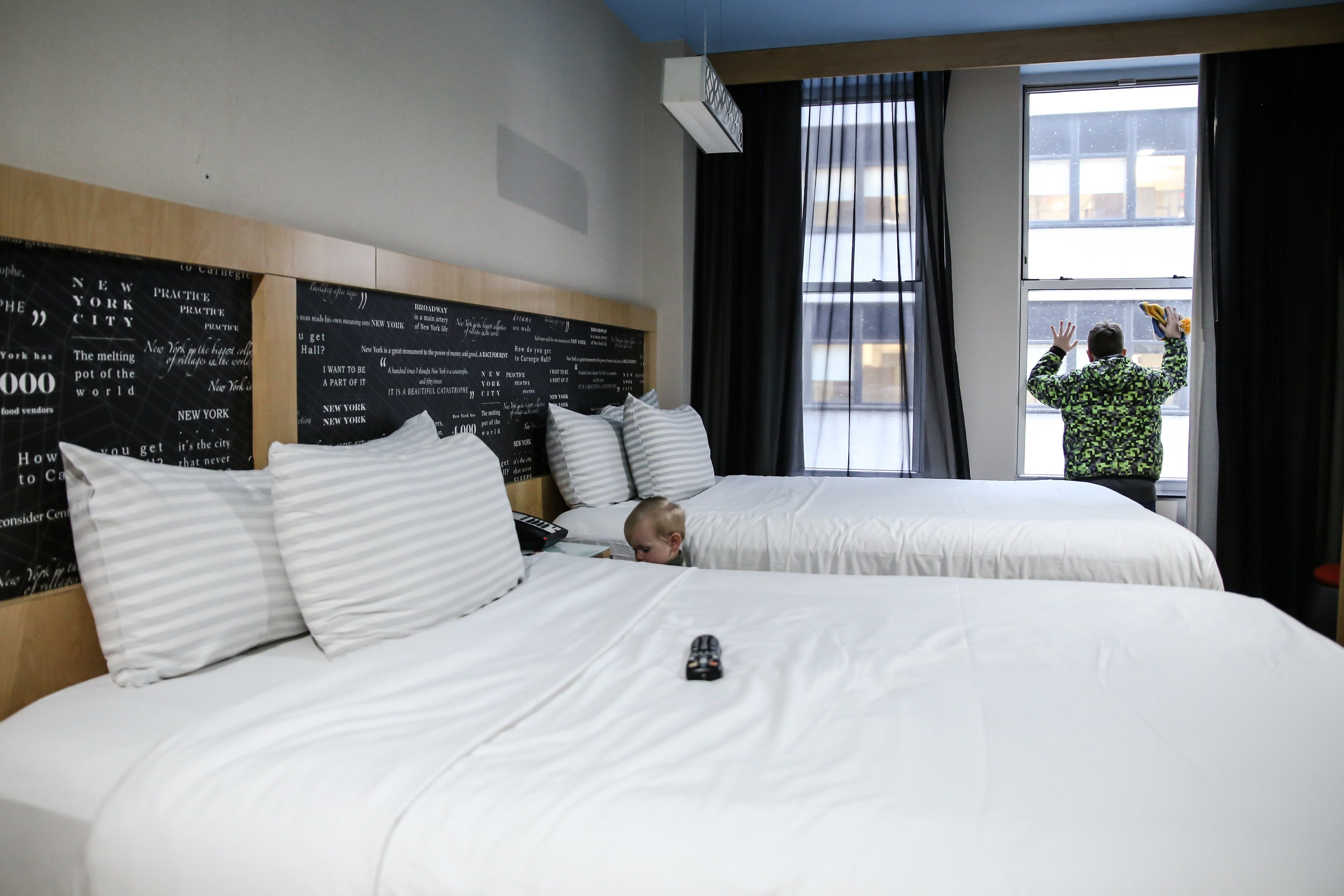 Yes, that is a hotel room in NYC with bunk beds! Not just bunk beds, of course. There were also two comfortable queen beds.