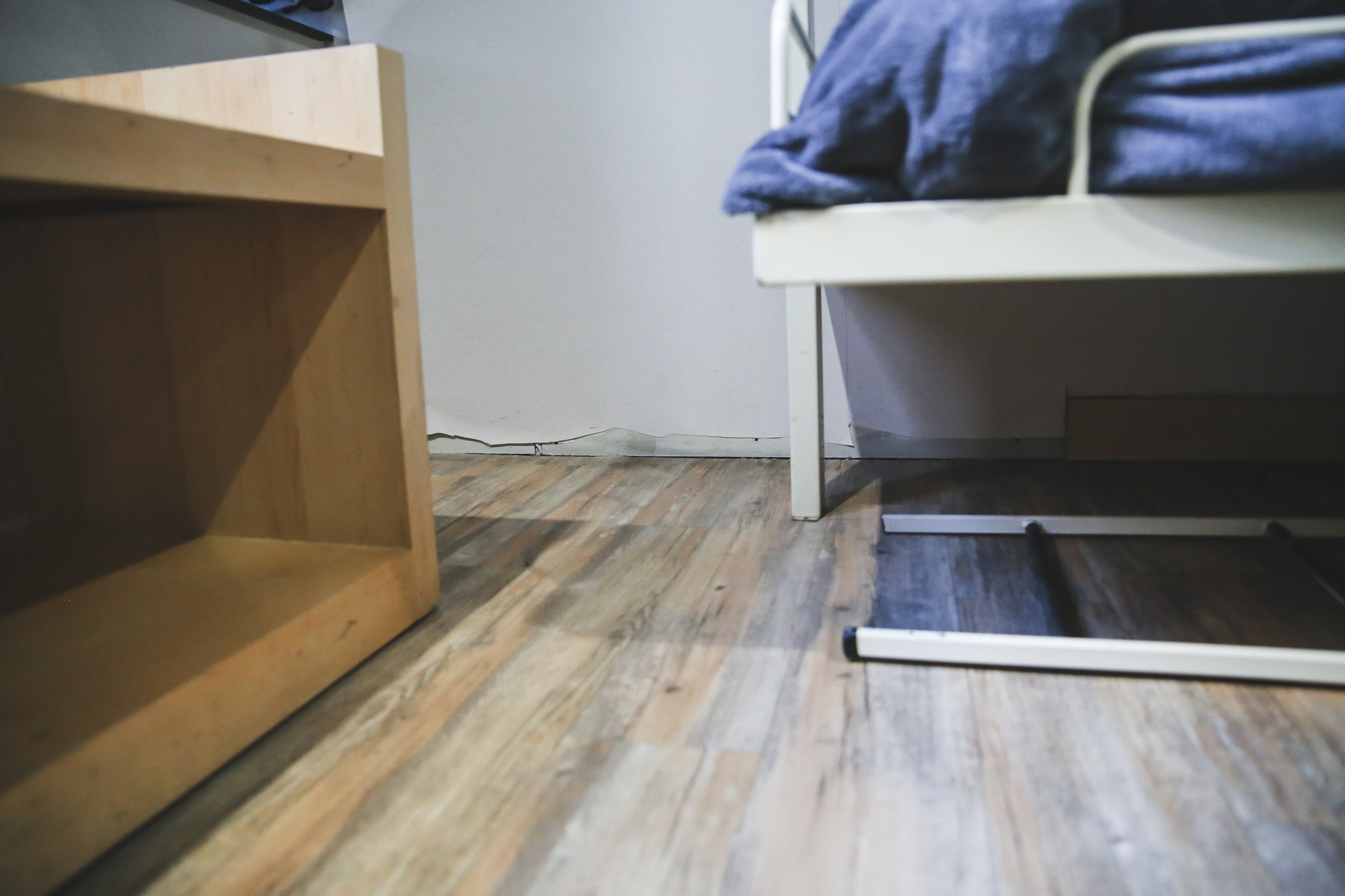 The only part of the room that felt like it had been neglected was a wall by the bunk beds where the baseboards had come off, or maybe were never put up in the first place.