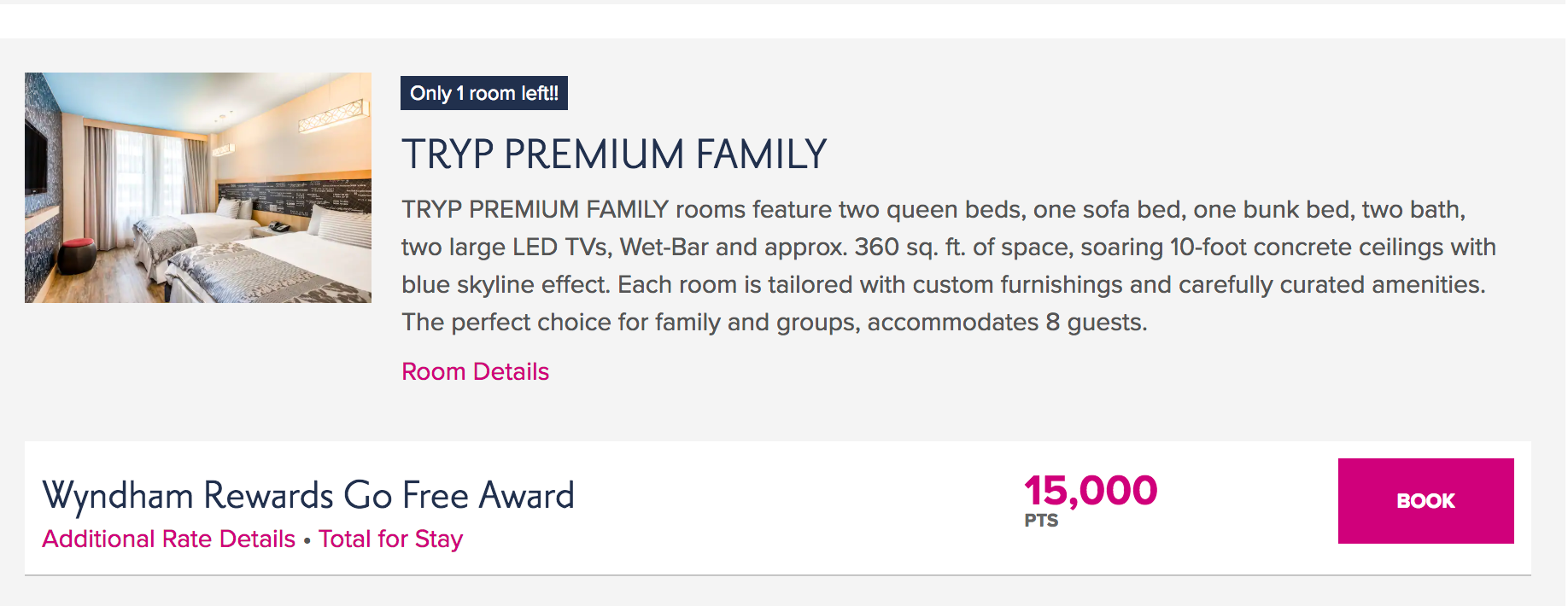 In total, the TRYP Premium Family room is actually rated for eight people. That is just virtually unheard of for a standard award room in any other program in NYC.