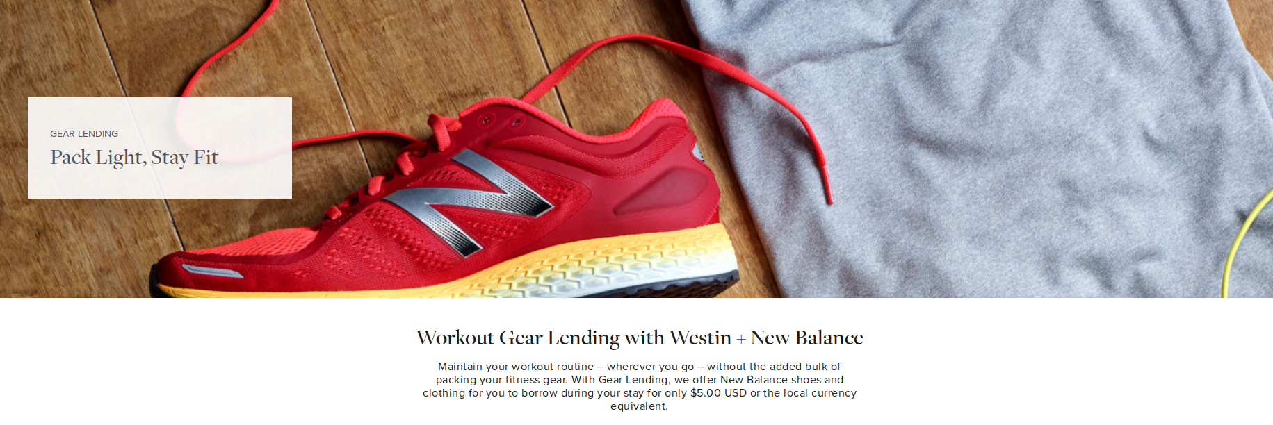 The Westin Gear Lending program is an excellent resource for active travelers that either don't want to travel with exercise gear or would prefer to keep their own exercise clothing clean. I'll certainly use the Gear Lending program again next time I stay at a Westin property. After all, you essentially get free use of workout clothing and shoes during your stay when you purchase a pair of socks for about $5. Hopefully more hotels will begin offering similar programs, since surely this is beneficial to both the hotel and to the clothing brand: New Balance gets more customers if guests are satisfied with the clothing and shoes they borrow and Westin provides a service to their guests that fits well with their wellness brand.