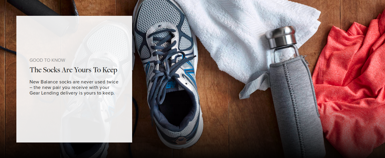 Socks are personal, so the socks you receive with your gear lending delivery are new and yours to keep. Most New Balance socks cost at least $5 a pair, so it's a good deal if you'll use the socks after your stay.