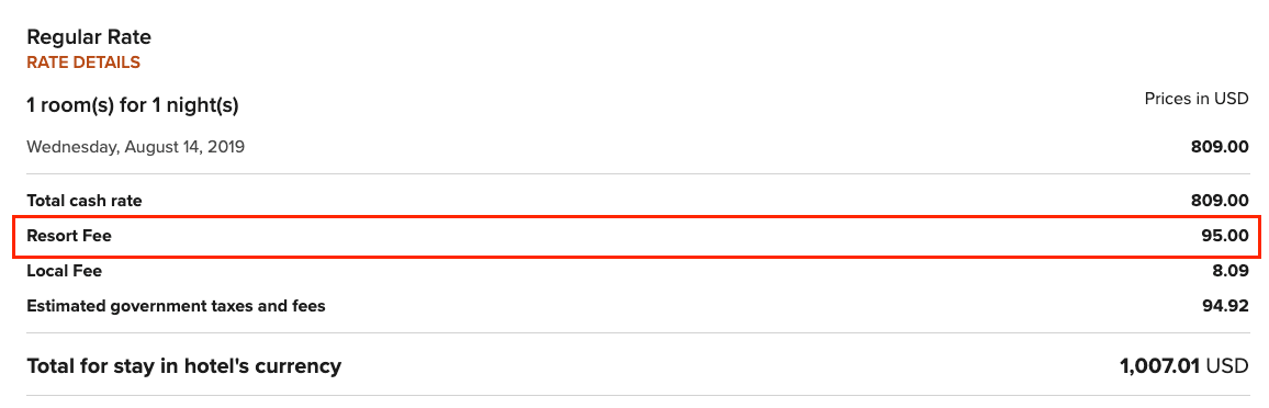 Luxury hotels are a special case in my mind for resort fees. If you're going to advertise yourself as a luxury establishment with room rates of $700 per night and higher, why try and obscure the price that already-expensive room? Dorado Beach, a Ritz-Carlton Reserve property in Puerto Rico with $809 room rates in August, charges a $95 per night resort fee on top of those room rates. By setting the room rate from $809 to $904, how much business could they truly lose in that market segment?
